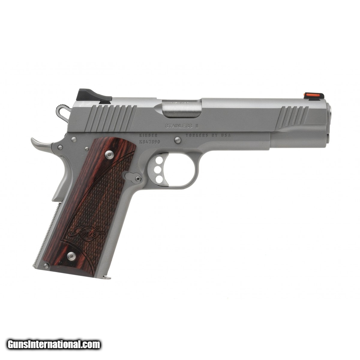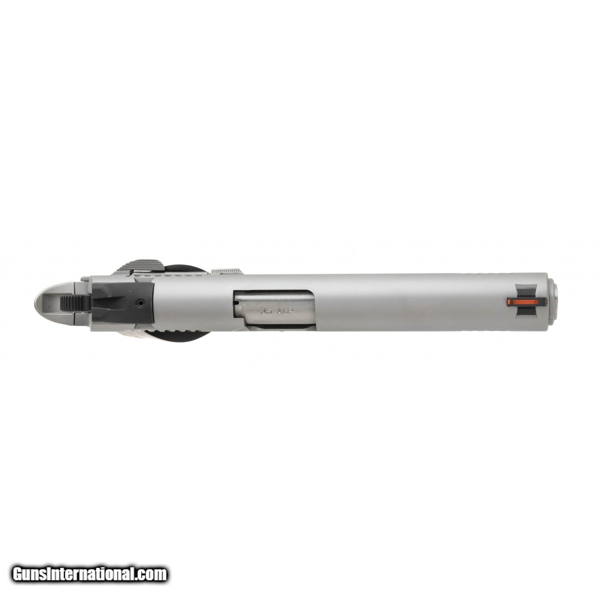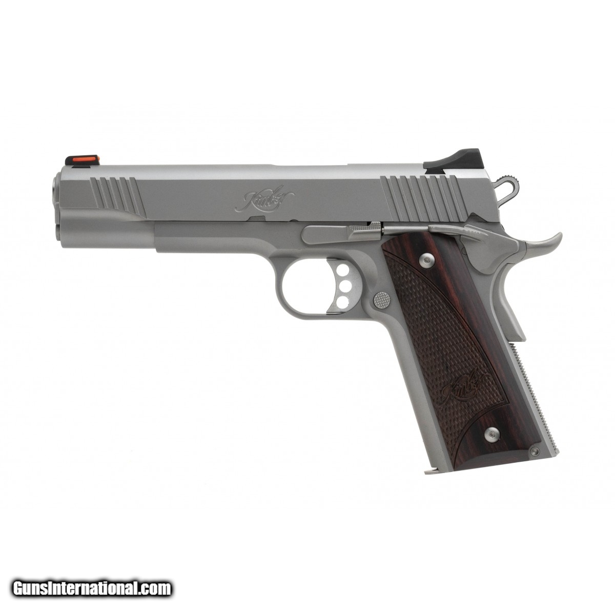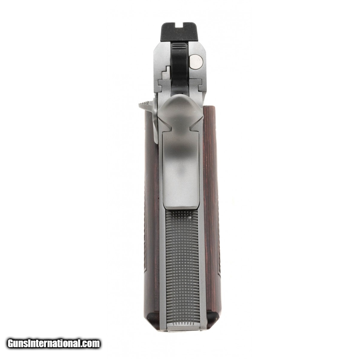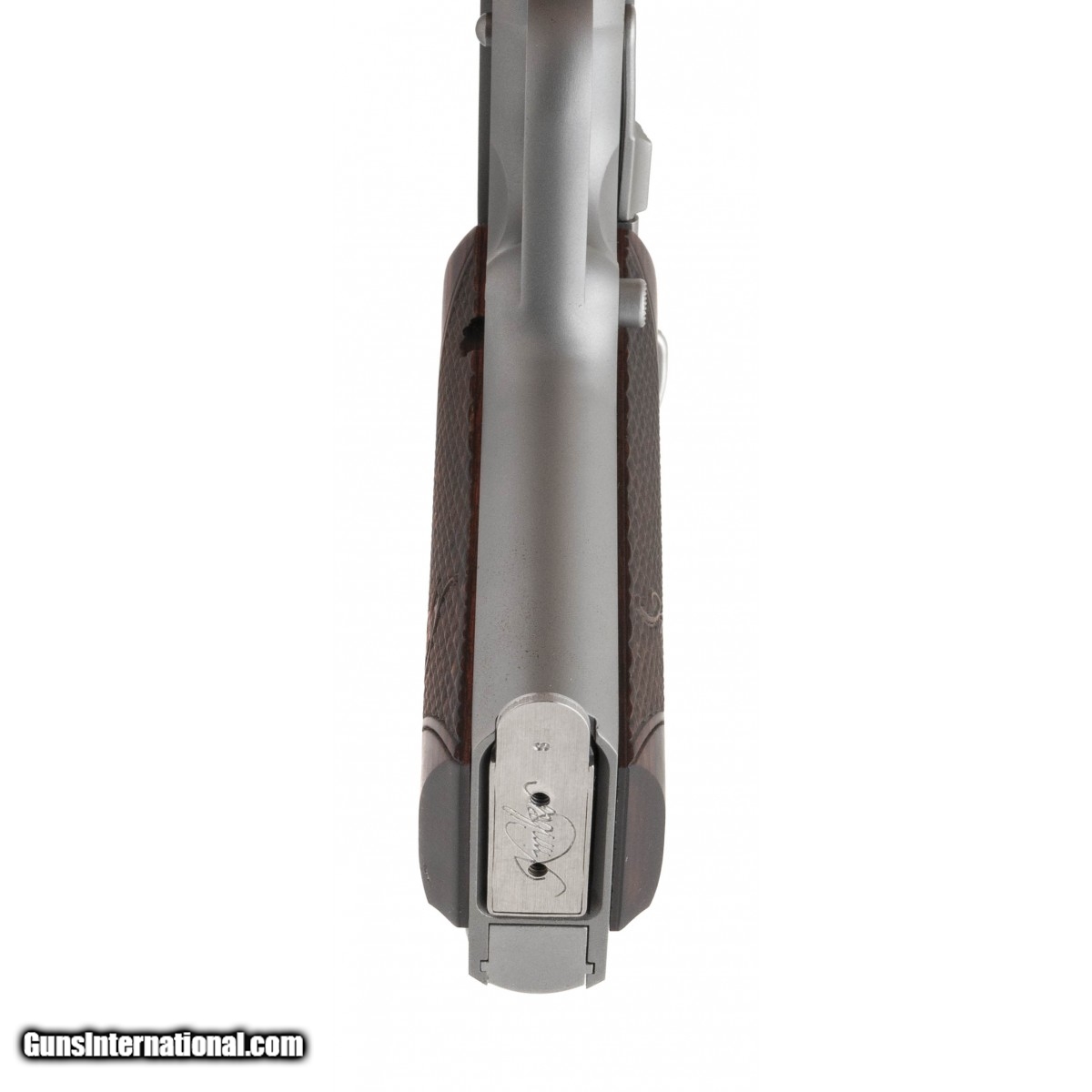 SN: K847890. Satin stainless full size 1911 with 5"" barrel, front fiber optic front sight, forward serrations and rosewood grips. Overall excellent condition. Comes with box.