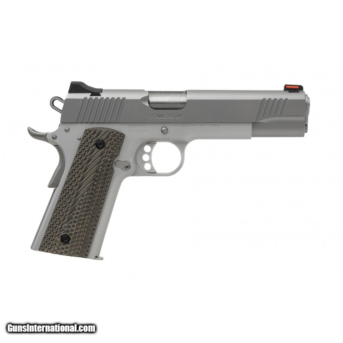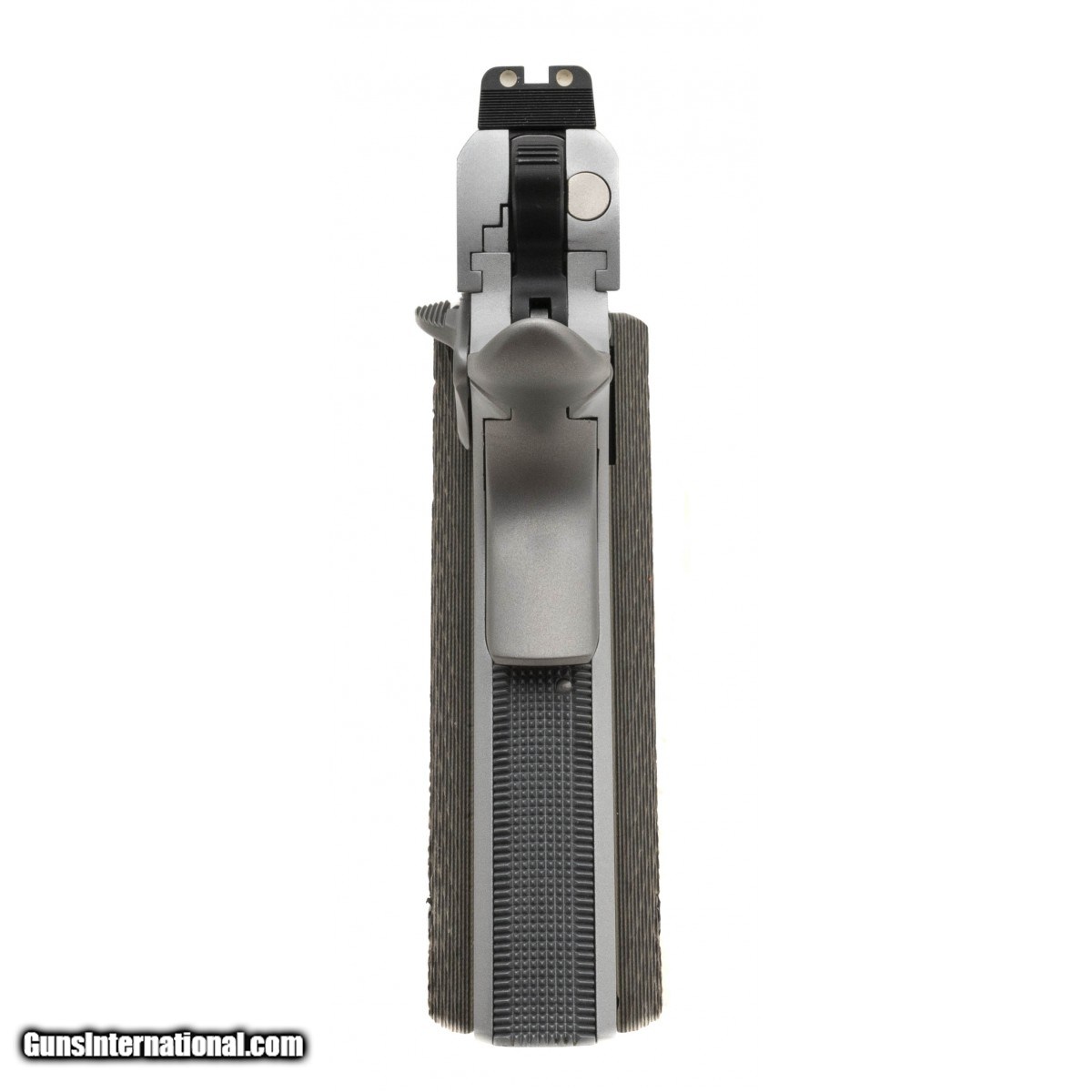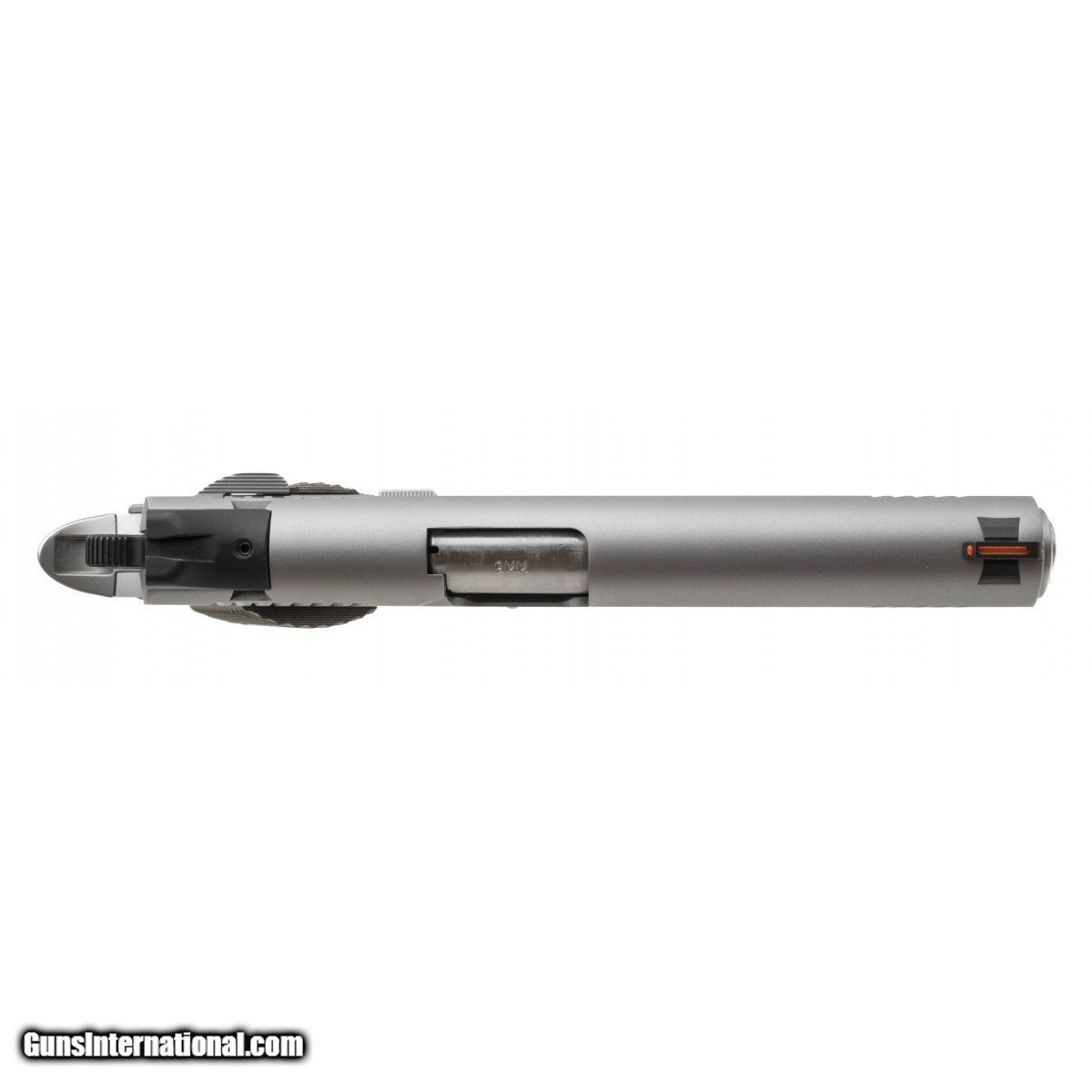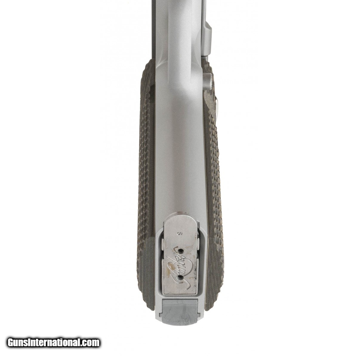 SN:KF81632. Semi-automatic stainless 5"" single action pistol with a fiber optic front sight, adjustable rear sights, &, G10 grips. In excellent condition. Comes in box with four spare 10RD magazines & wooden checkered grips.