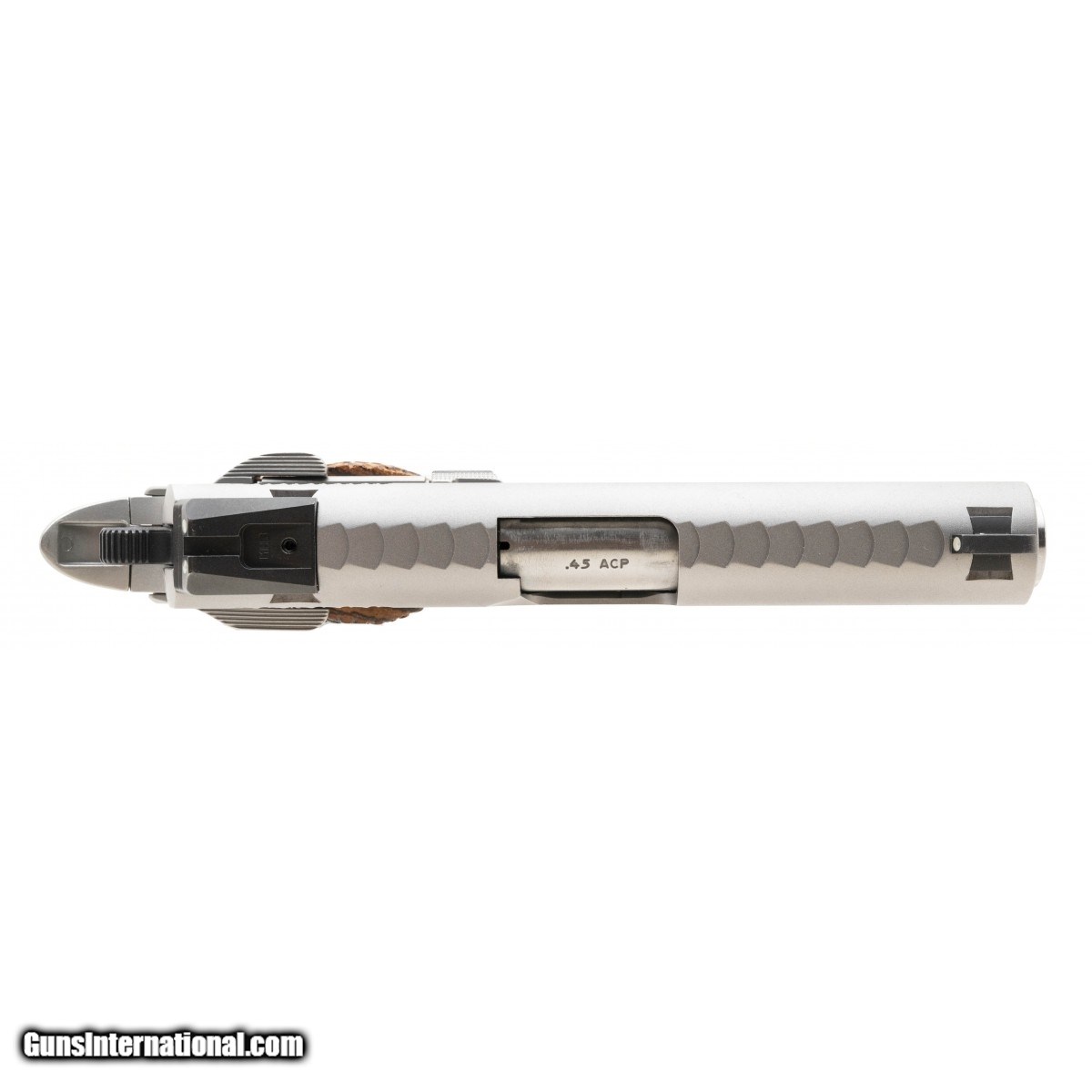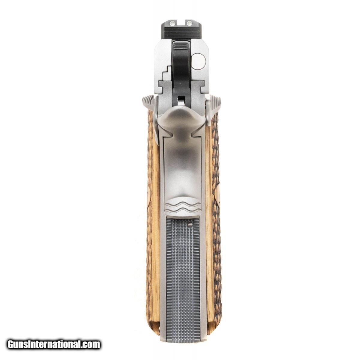 Description: " Stainless model with a 4"" barrel and unique ""Raptor"" serrations, grips and checkering. Night sights, Skeletonized trigger and hammer. Comes with box and is in excellent condition. SOLD |