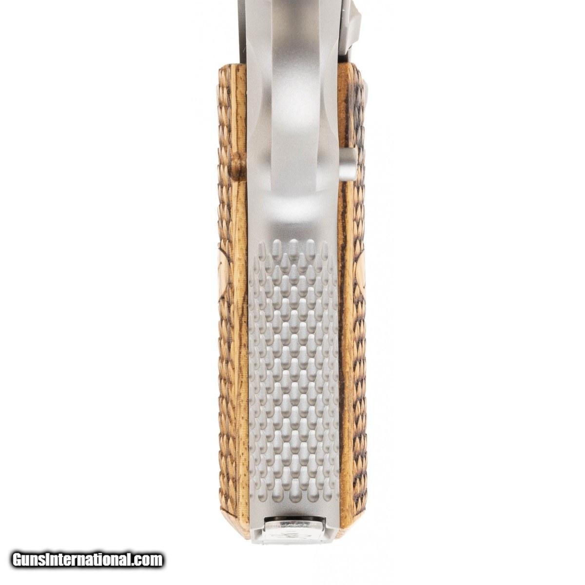 Stainless model with a 4"" barrel and unique ""Raptor"" serrations, grips and checkering. Night sights, Skeletonized trigger and hammer. Comes with box and is in excellent condition.