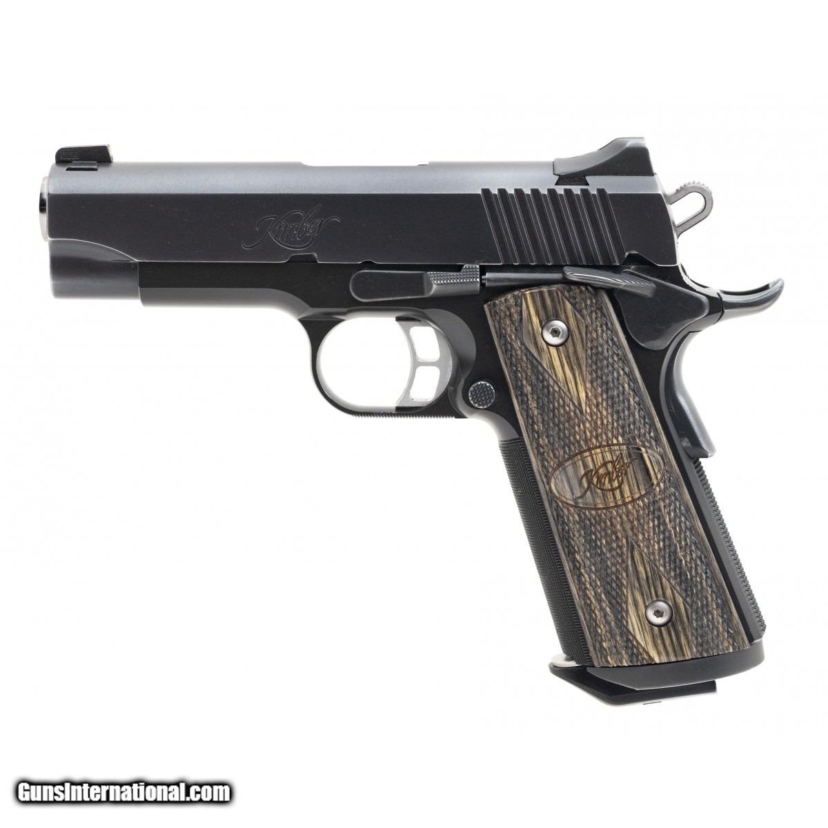 SN: KRF15420. Modern production. 9x19 parabellum with a 4"" barrel, bore is excellent. Compact 1911 handgun with alloy frame, charcoal gray finish, night sights, ambi safety and laminated wood grips. Overall excellent condition. Comes with box, extra magazine and spare wood grips.