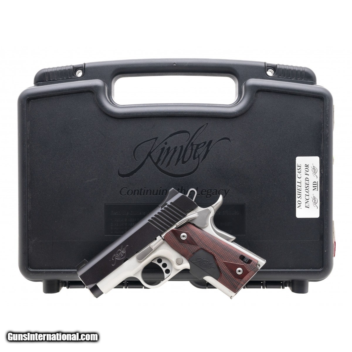 Description: " SN: KU245621. Modern production. .45 with a 3"" barrel. Bore is very good. Aluminum frame Kimber with two tone finish and Kimber laser grips. Finish and grips are in excellent condition. Comes with box. SOLD |