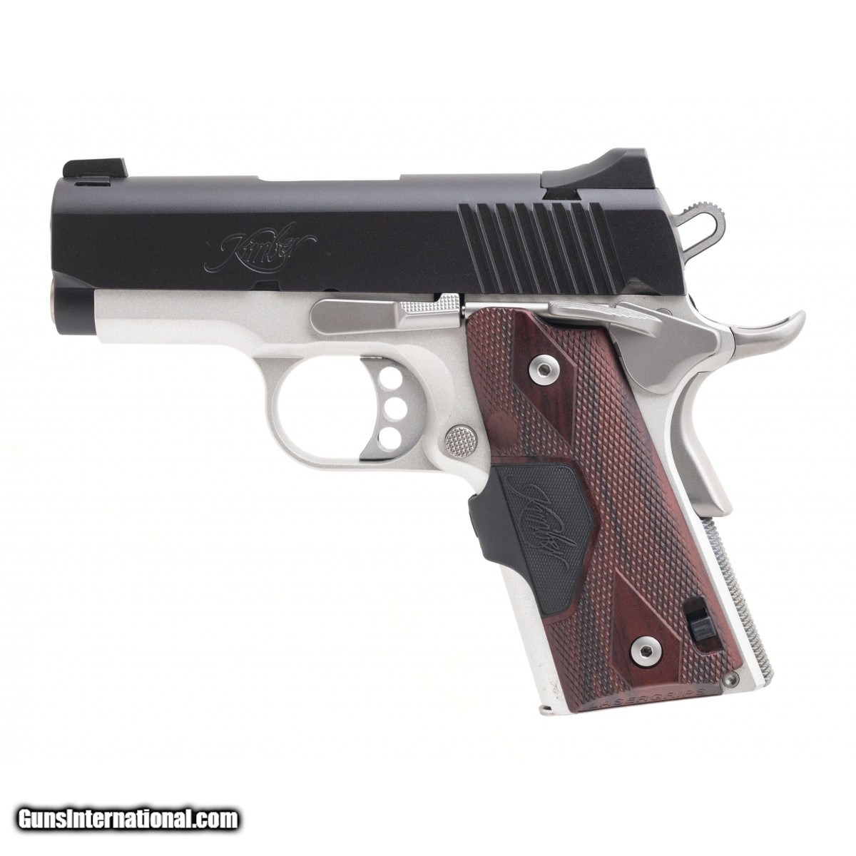 SN: KU245621. Modern production. .45 with a 3"" barrel. Bore is very good. Aluminum frame Kimber with two tone finish and Kimber laser grips. Finish and grips are in excellent condition. Comes with box.