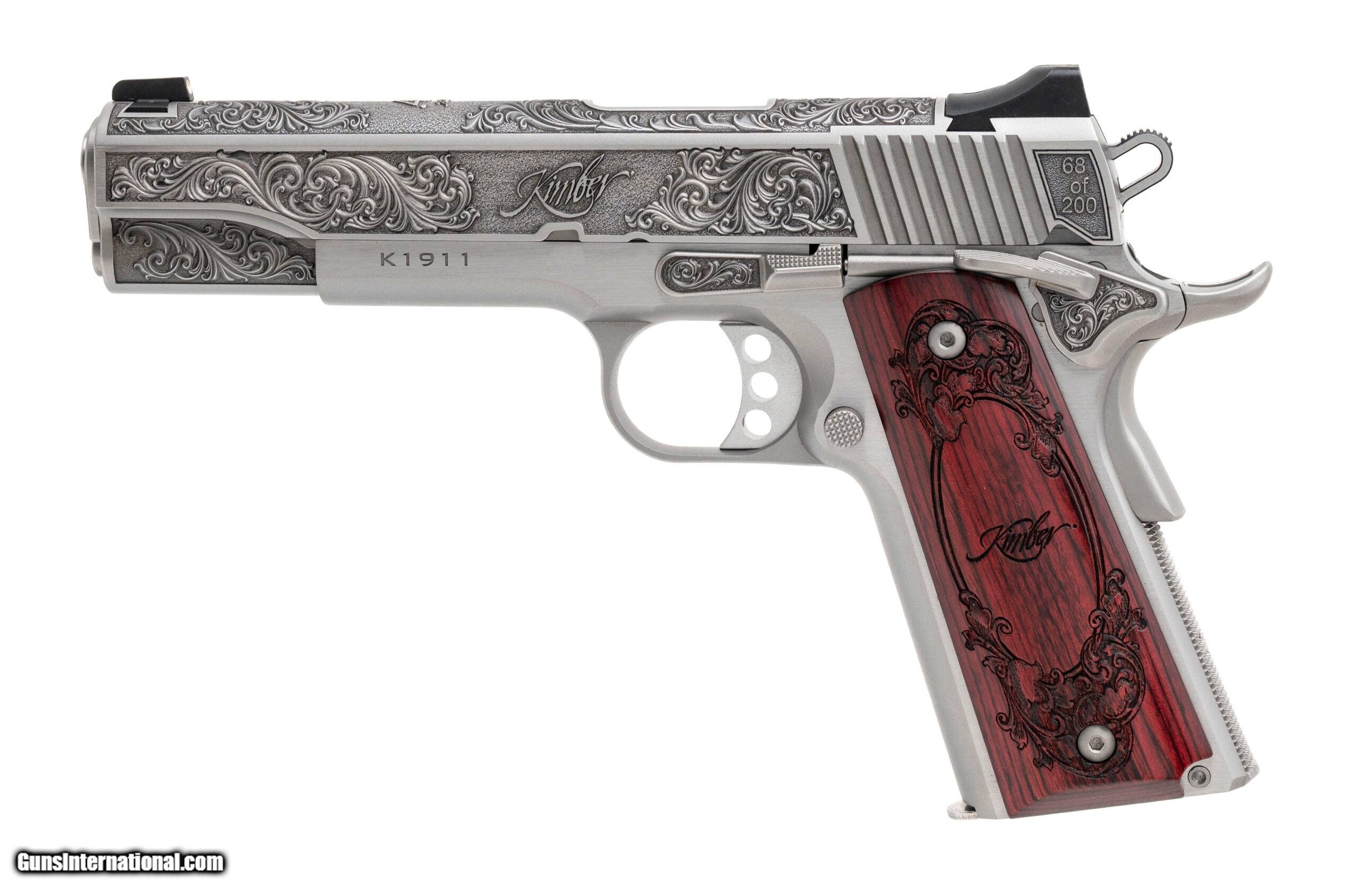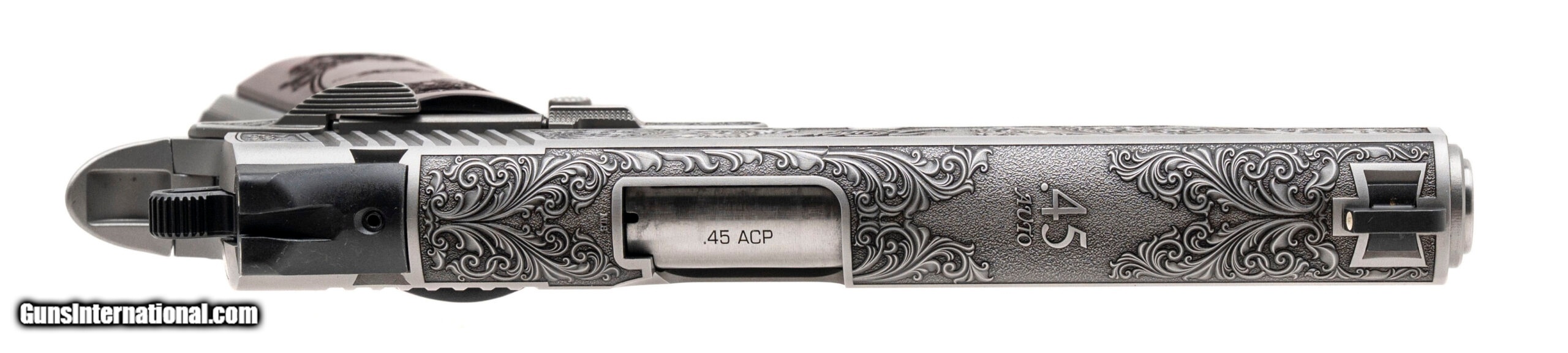 Description: "One of 200 made Custom 1911 Style Pistol with a 5"" Stainless Steel Barrel. Full Size, Stainless Steel, Engraved, and Rosewood Grips w/Engravings. Includes 1-7rd Magazine and a CNC Collectors Coin. NEW. UPC: SOLD |