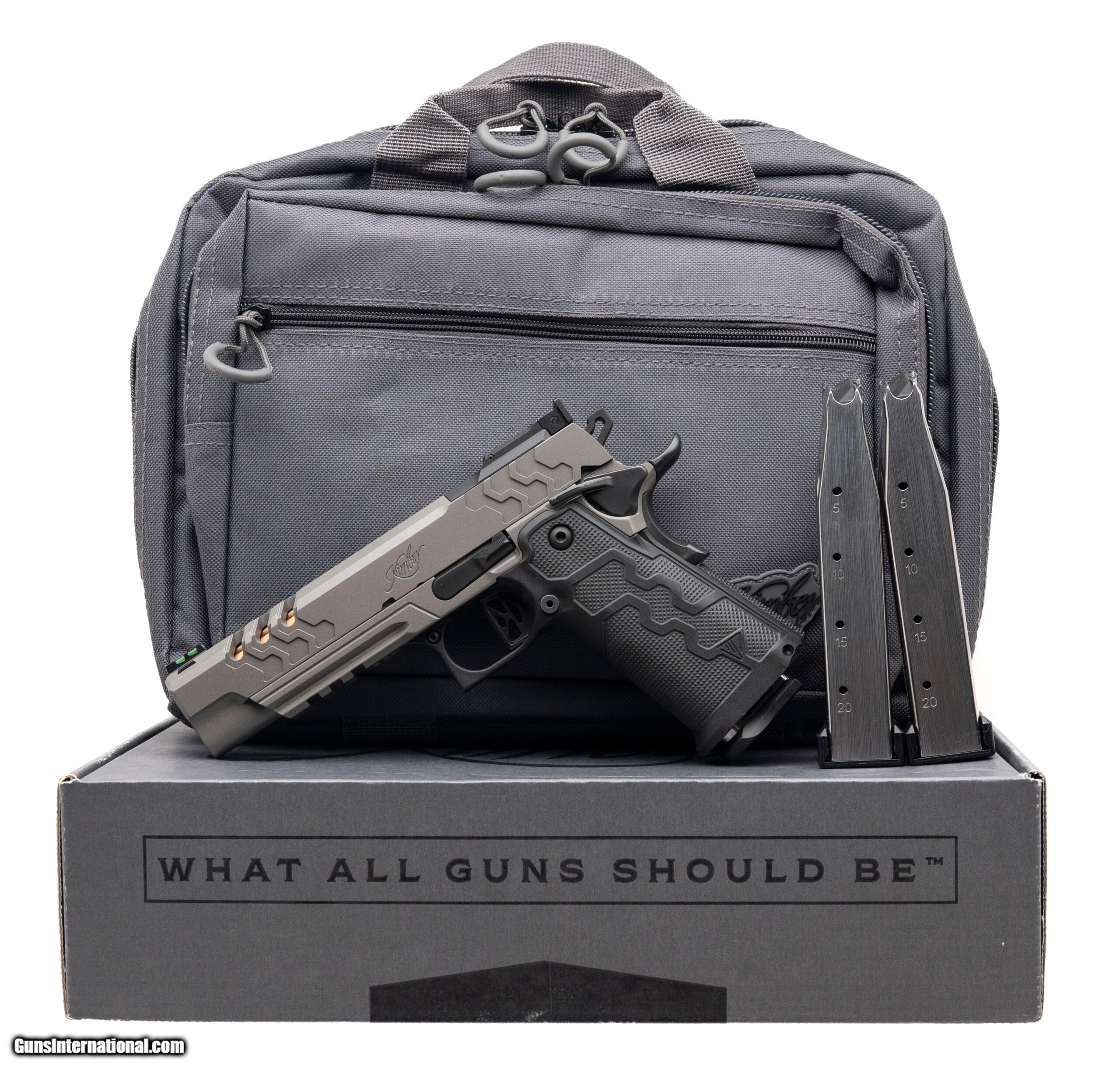 Description: "Double Stack 1911 Pistol with a 5"" Fluted Coyote PVD Polished Bull Barrel. Full Size, Stainless Steel/Matte KimPro Granite Finish, Kevlar® Carbon Fiber Grip Module, Optic Ready, GT Match Grade Trigger (3-4LB Pull), and Fiber Optic Front Sight. Includes 1-17rd & 2-20rd Magazines, Optic Adapter Plate, and a Kimber Carry Bag. NEW. UPC: 669278350608 (STOCK PHOTO) SOLD |