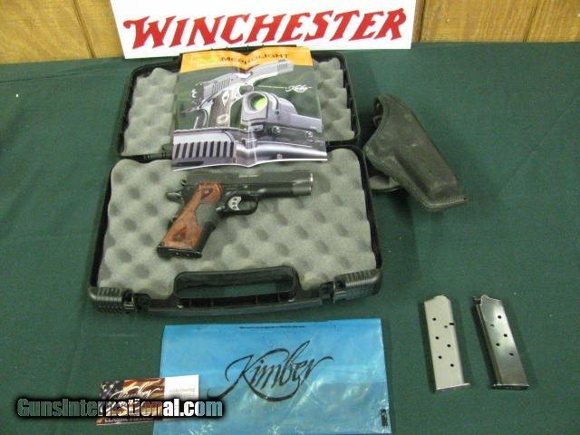 7391 Kimber Pro Carry II 45 ACP Crimson Trace Lazer,nite sites, checkered Rosewood grips, cased, papers, holster, 98%,extended grip safety, aluminum t