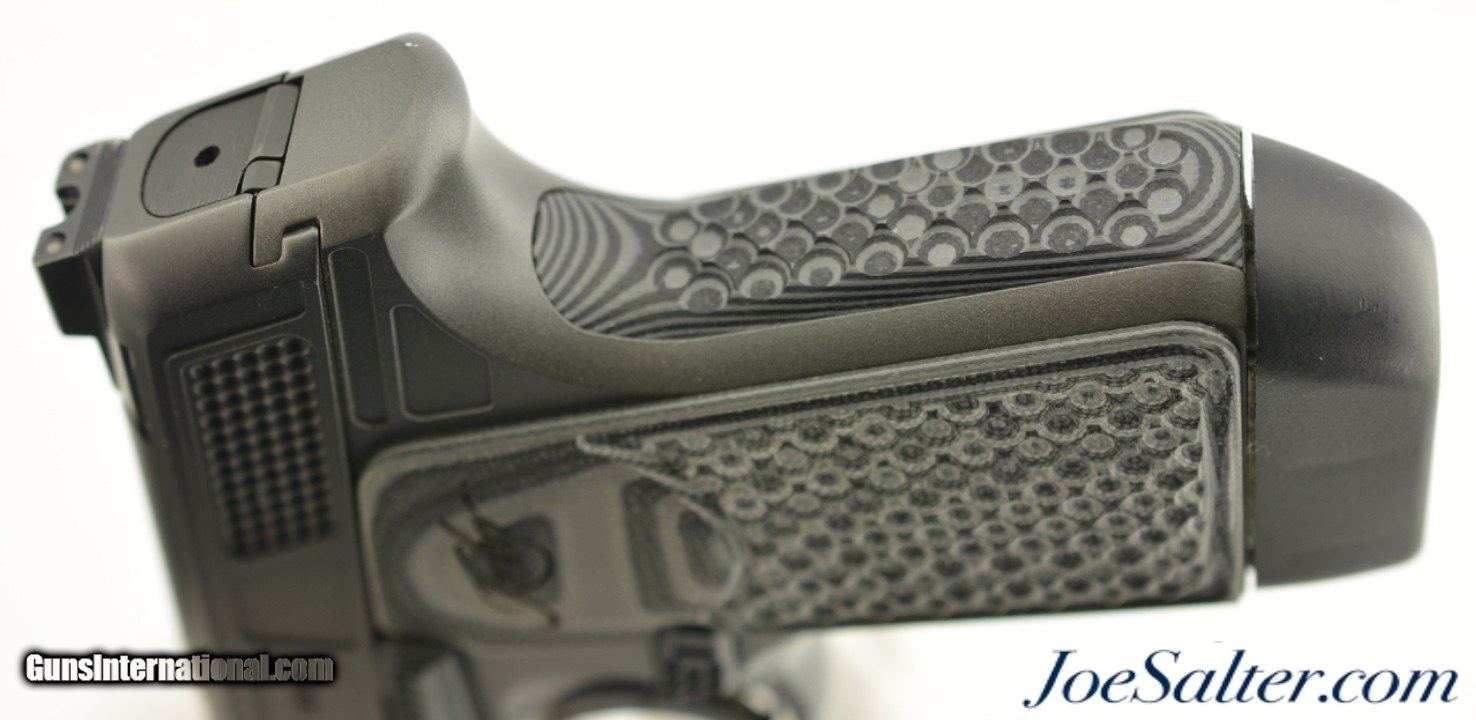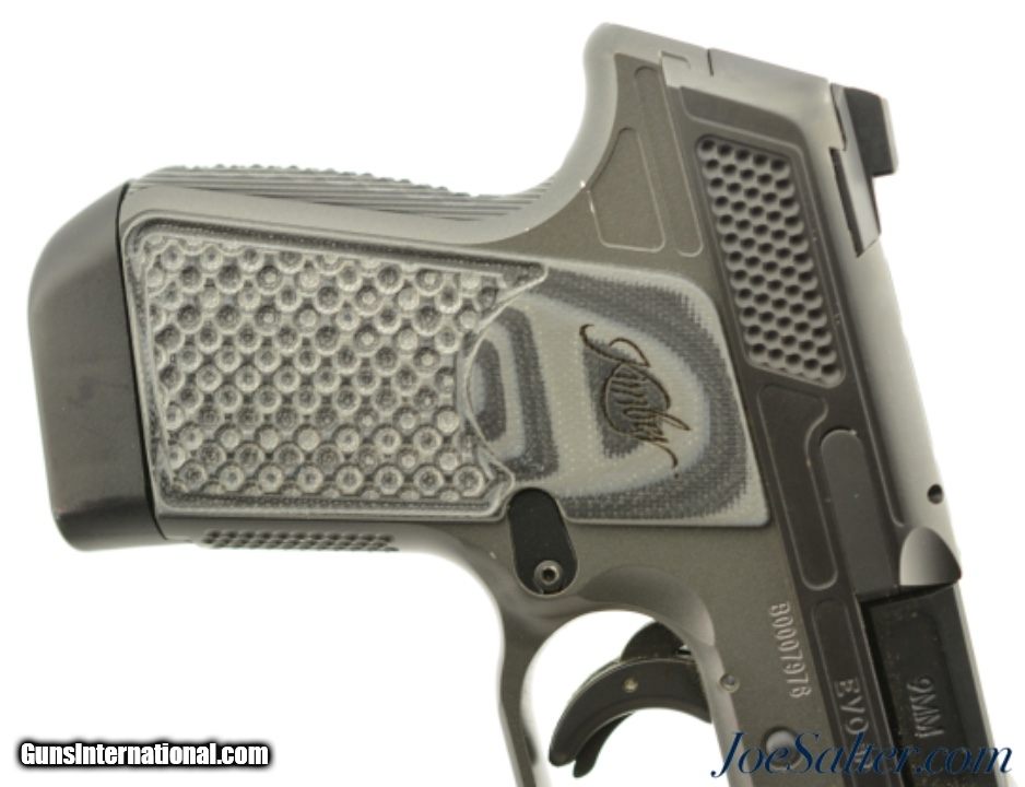 Description: Serial #B0007976, 9mm, 3.16 inch barrel with a bright, excellent bore. This is the Custom Shop model EVO SP pistol manufactured by Kimber featuring an aluminum frame, KimPro II charcoal Gray finish, match grade stainless steel barrel FNC stainless steel slide and TruGlo Tritium Pro sights with gray/black G10 grips and Stiplex inspired serrations on the slide, front strap and grips. In excellent condition the compact semi-automatic pistol retains about 97-99% of the original metal finishes with only very light use and handling marks. It comes in the original box, numbered to the gun, with manual and paperwork along with two 7 round extended magazines and zippered storage pouch. FFL SOLD |