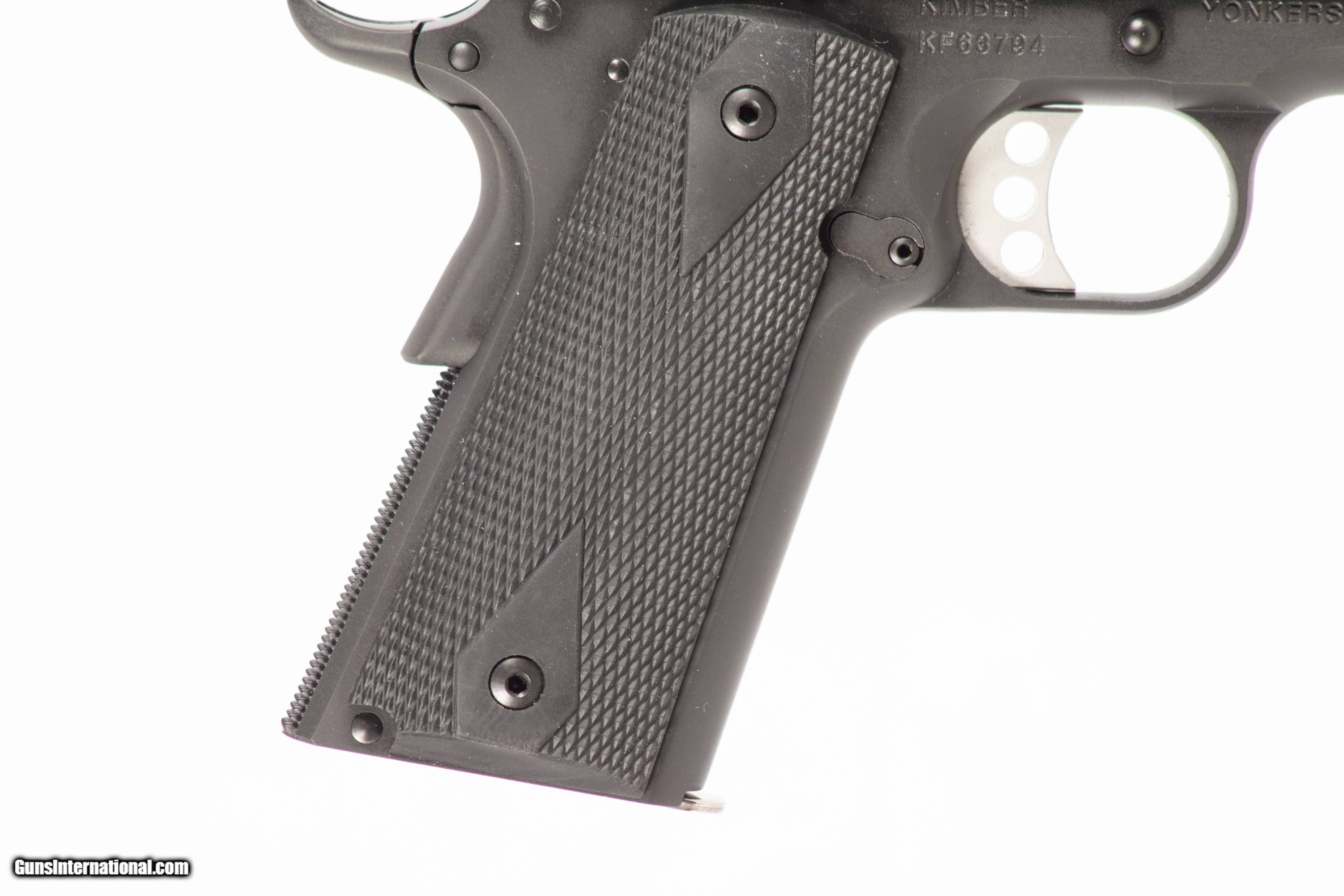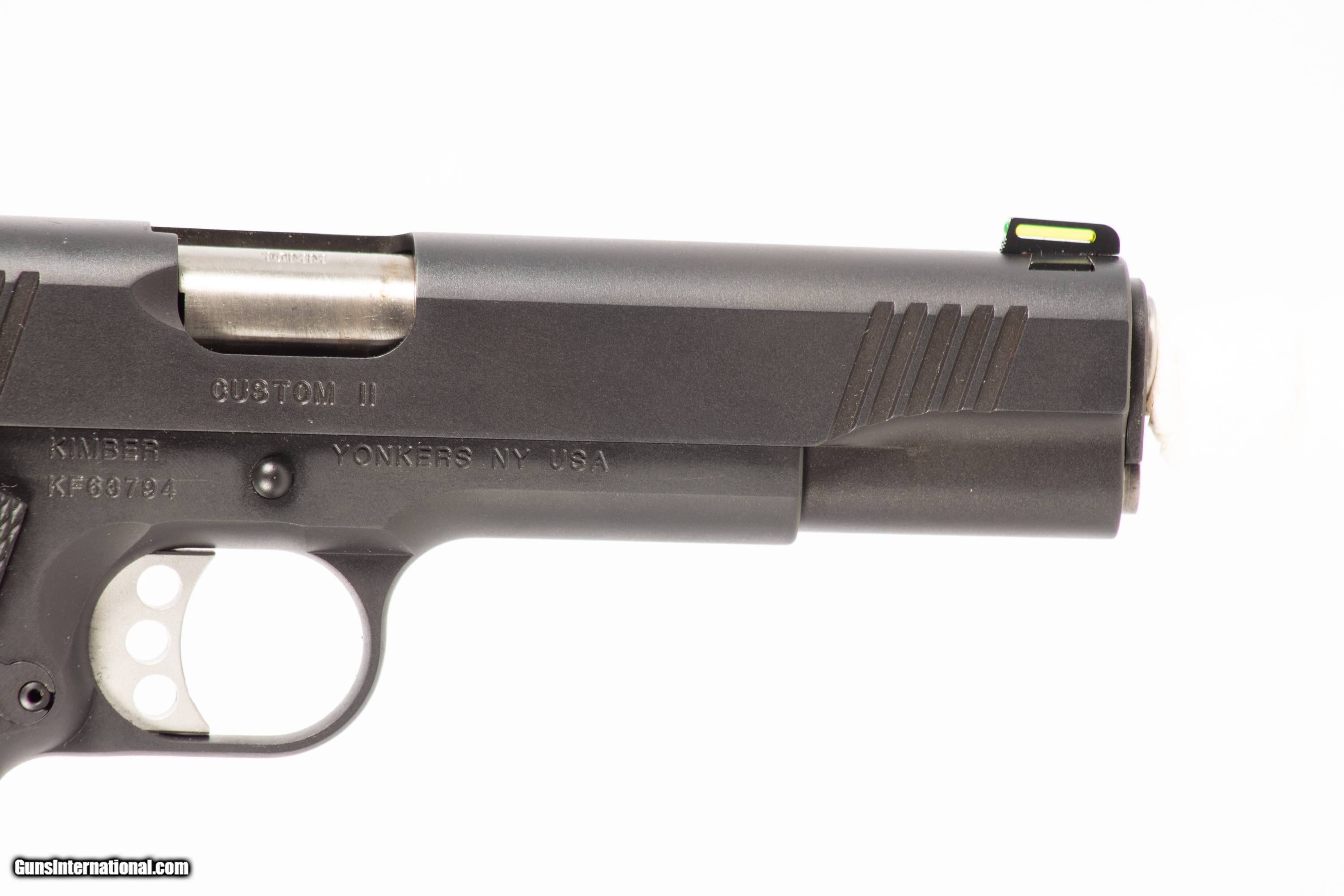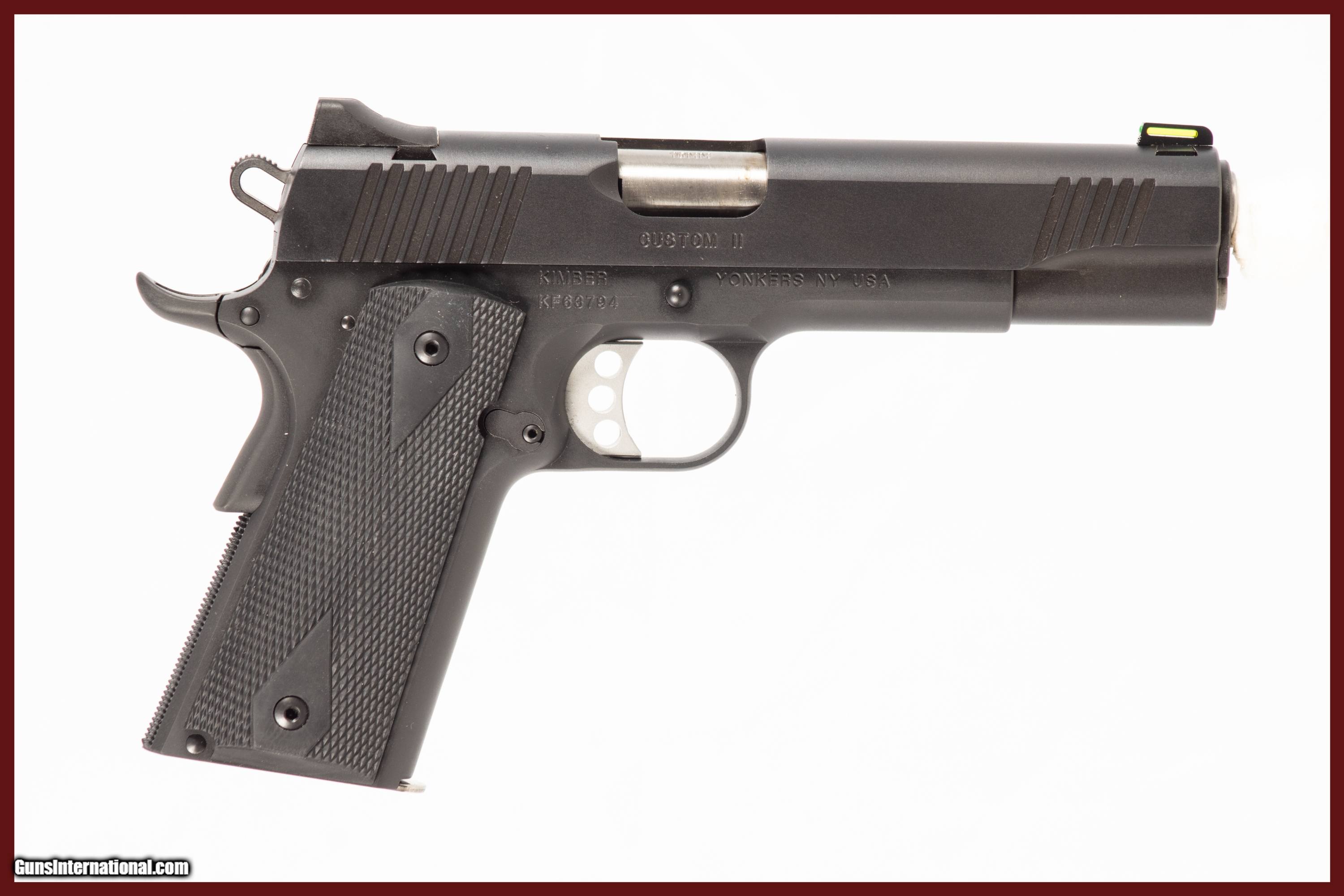 Kimber 1911 Custom II chambered for 10mm Auto with a 5 inch barrel bright & shiny bore fiber optic front sight white dot rear sight and case. This firearm is in excellent condition and is covered by Dury's Lifetime Warranty.