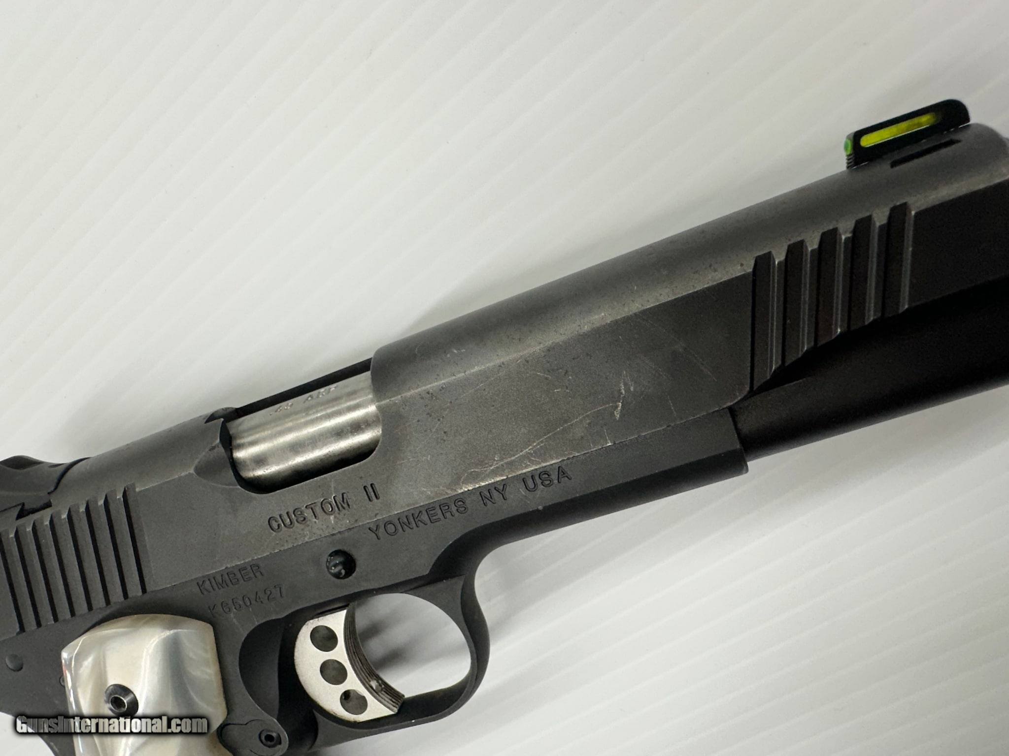 Description: Guns Listing ID: 1123777 As shown in pictures, light rust spotting on hammer, and one of grips has a crack SOLD Manufacturer: KIMBER Model: 1911 custom II Caliber Info: .45 ACP Condition: Used - Non-Certified Barrels: 5 BARREL Finish: BLACK |