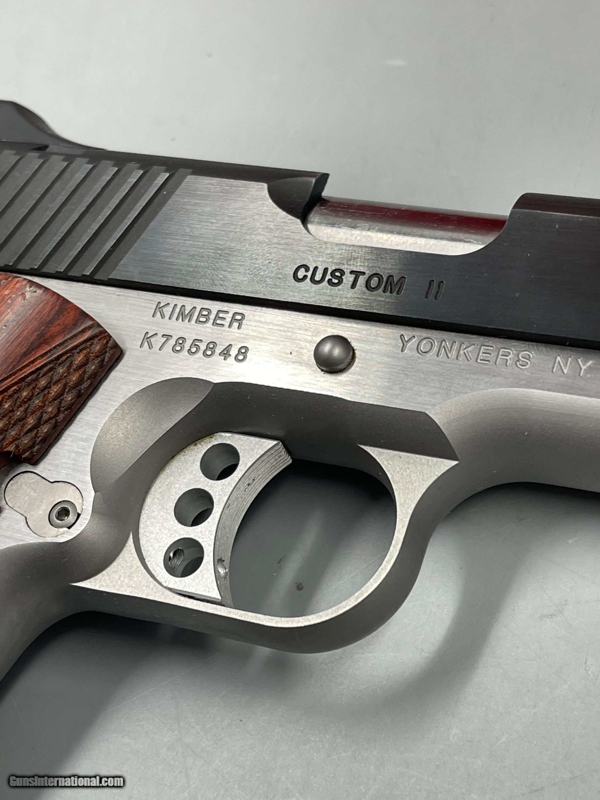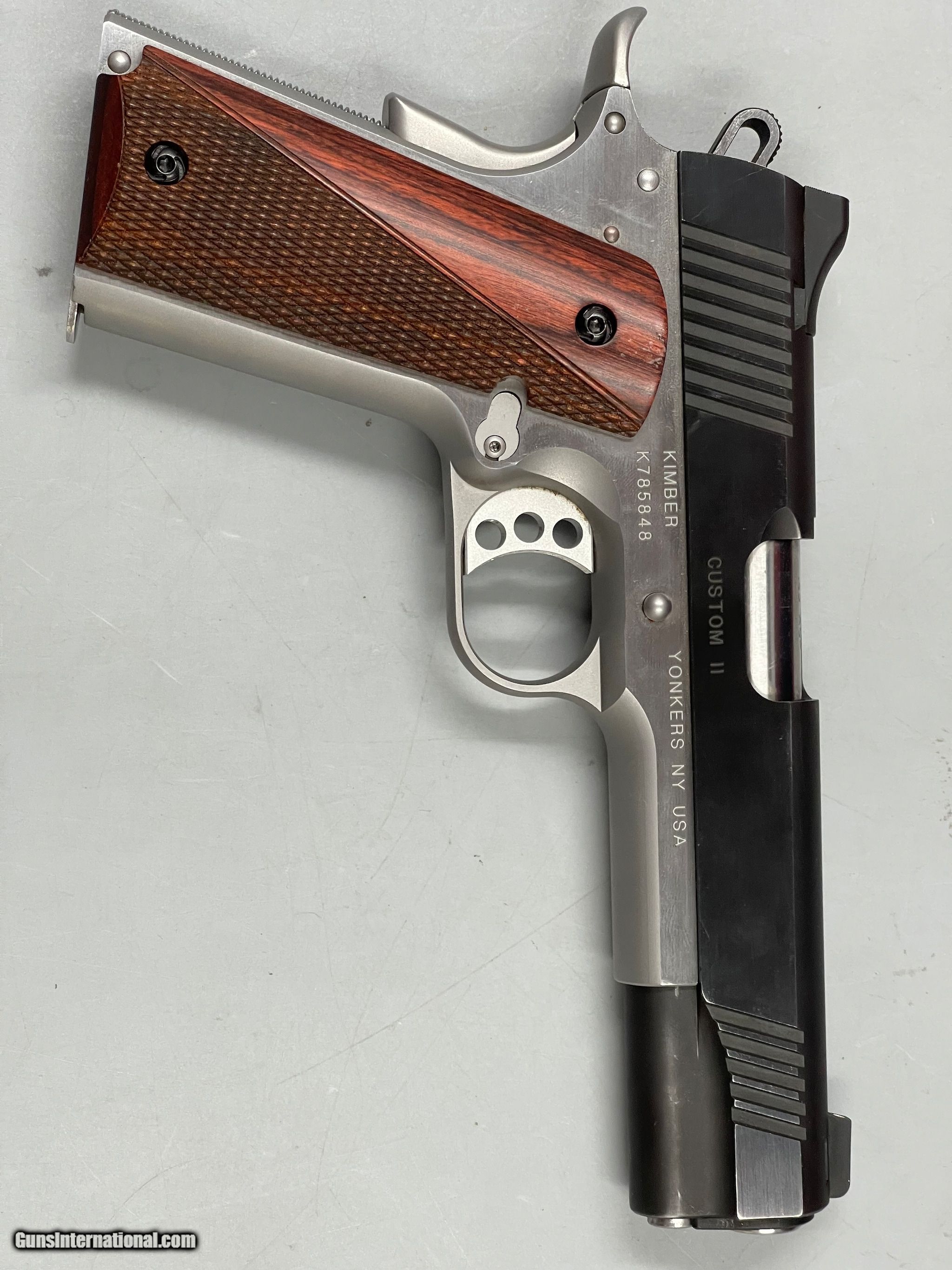 Description: Guns Listing ID: 659888 Kimber 1911 two tone Black and Stainless. SOLD Manufacturer: KIMBER Model: 1911 custom II Caliber Info: 45 ACP Condition: Used - Non-Certified Barrels: 5 BARREL Finish: TWO TONE BLACK AND STAINLESS |