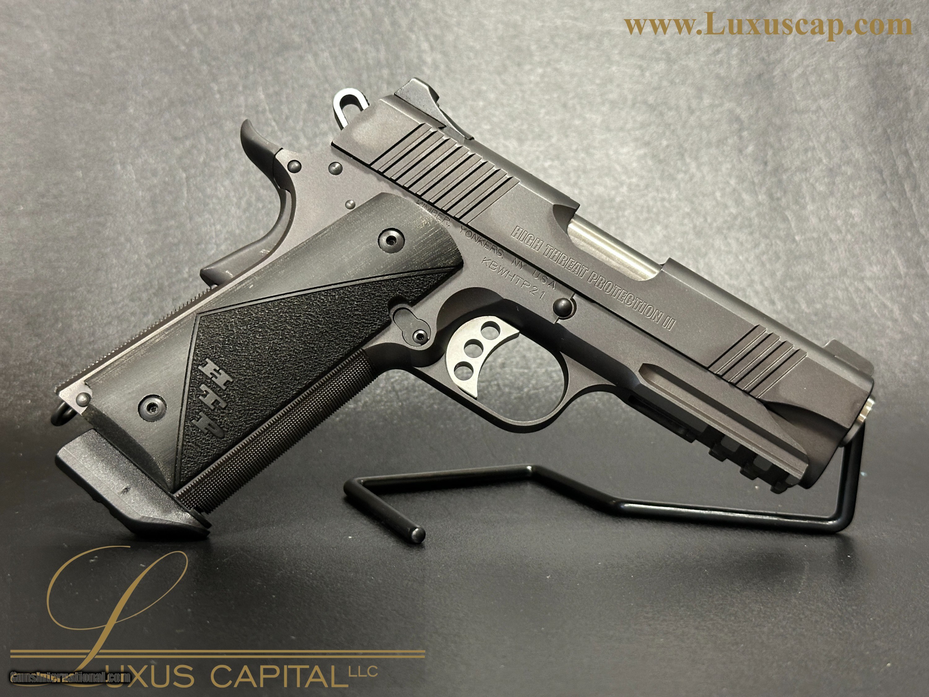 Description: The Kimber Custom Shop High Threat Protection II 1911 is a remarkable and exclusive firearm explicitly designed for the senior managers of Blackwater. This masterpiece is not merely a gun but a symbol of exquisite craftsmanship and individual distinction. Each piece is meticulously handcrafted, making it a rare find in the world of firearms. With only a select number produced, it underscores an unparalleled commitment to quality and precision. This model comes packaged in its original box, complete with detailed paperwork that attests to its authenticity and provenance. The documentation is as much a part of the collector’s value as the firearm itself, providing a clear lineage and historical context that enhances its appeal and worth. Holding the Kimber Custom Shop 1911, one immediately senses the significance of its heritage. The grips are intricately carved, offering aesthetic pleasure and a firm, confident hold. Each component is precisely machined, reflecting a level of detail that is rarely seen in mass-produced firearms. This precision ensures exceptional performance and reliability, making it more than just a display piece. With its limited availability, the High Threat Protection II 1911 becomes a dream acquisition for collectors. It represents the pinnacle of gun craftsmanship, symbolizing both rarity and elite status. Collectors and enthusiasts who acquire such a piece embrace its functional attributes and the prestige and enduring quality that come with owning a piece of art crafted by the esteemed Kimber Custom Shop. This custom firearm is a testament to the fusion of art and function, a coveted addition to any collection. Thank you for viewing our Listing. Don't forget to check out our other listings. Contact Information For any questions or specifications regarding this item, please email infoluxuscap or call us at (833) 486-6659. To learn more about who we are, visit us at Luxuscap. Shipping costs are not included. Most items are shipped via UPS and insured automatically at $100. Buyers are welcome to request additional insurance at their expense & may also request a different carrier. Luxus Capital will not be held responsible for any damage incurred during shipping. We take great care in securing our items to ensure their safe delivery, but handling the packages is beyond our control once they leave our store. SOLD Handgun Caliber: 9x19mm Parabellum (9mm Luger, 9x19mm NATO) Manufacturer: Kimber Model: 1911 High Threat Protection Serial Number: KBWHTP21 |