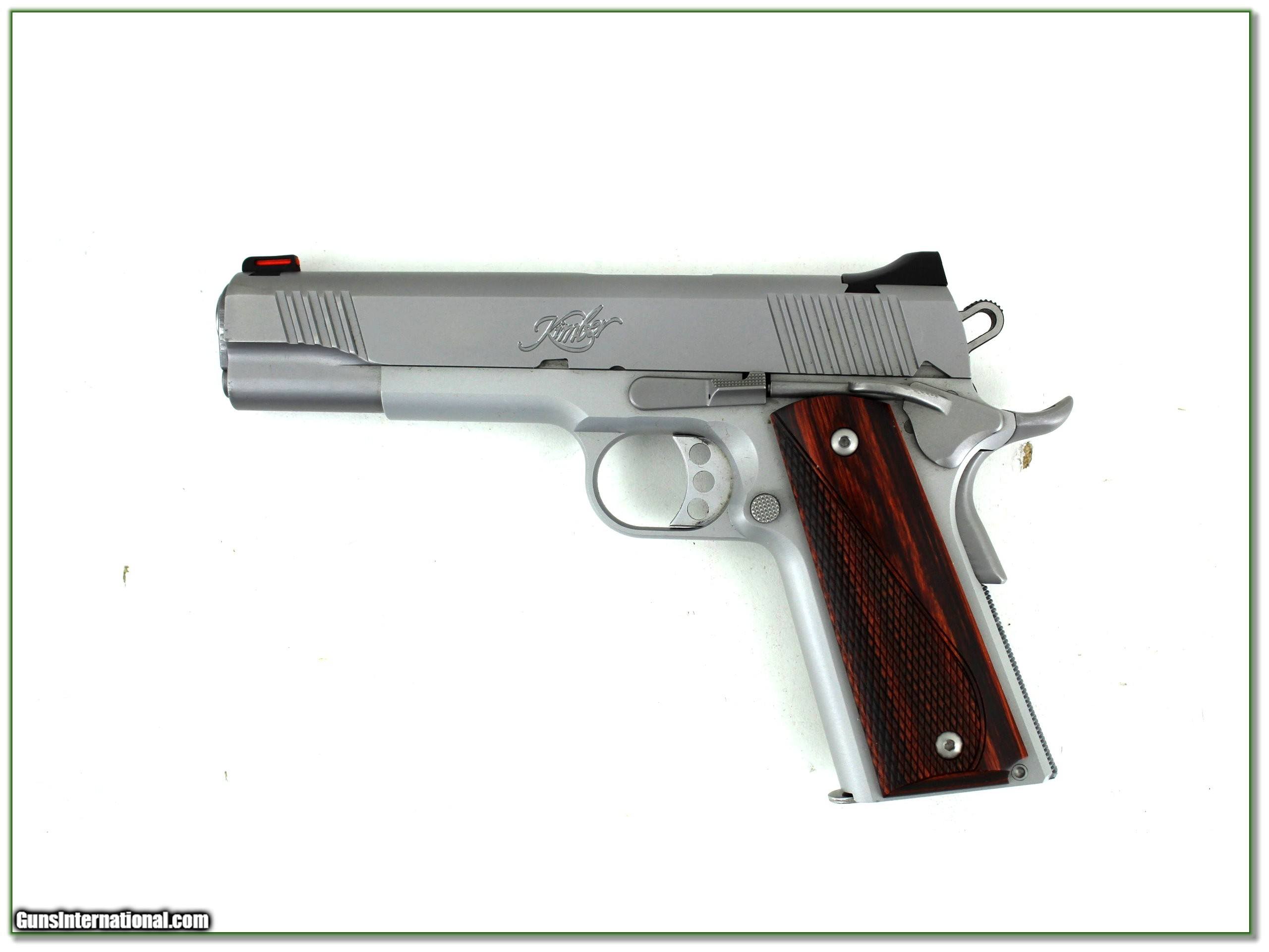 Description: This is a near new Kimber Stainless Lightweight 45 ACP. I am sure only a few rounds fired, and I find no marks. It comes as seen in factory case with 2 magazines and manual. I am selling this one on consignment and as such lay-a-way can’t be used. It does of course have the standard 3-day inspection. Shipping and insurance is $49. Please email me with any questions or larger pictures. (Consign your quality firearms with Shooting Investments for only 12%! Let me know if you have any you would like to sell!) 23-0180 Payment: Payment is by Money Order, Cashier’s Check or Personal Check. I can now also accept Credit Cards (MasterCard, Visa, Discover & American Express) with a 3% convenience fee. Shipping: The shipping charge will be listed in each description. It is $49 for most firearms. Some heavy guns or those insured for over $2000 will be higher. Shipments to Alaska and Hawaii are higher because air shipment is required. Most firearms are shipped on Tuesday and Thursday and usually in 5 days of receipt of payment. We package all shipments carefully and insure them. Optics are shipped Priority Mail and most other non-firearm shipments are shipped First Class. Returns: Our return policy is simple. If for any reason you are not pleased with your purchase, you may return your item for a full refund of purchase price. Ammunition cannot be returned. It is important to us that you are happy. Guns cannot be fired or dissembled before returning them and they must be returned in the same condition as received. Notification of a return must occur within 3 days of receipt at your dealer. Shipping, convenience and dealer fees are not refundable and are the responsibility of the buyer. Lay-a-way: If needed, we offer a 60 day lay-a-way option on most firearms. It is 1/3 now, 1/3 in 30 days and 1/3 in 60 days. Lay-a-way firearm sales are final and cannot be returned. If a lay-a-way is not completed the first payment cannot be refunded. Consigning your firearms with Shooting Investments: We will help you get top dollar for your firearms. While most local guns shops charge 20% or more, our fee is only 12% with a minimum of $75. At your local gun shop it might take months to sell. Selling on-line provides instant access to thousands of interested buyers. You won’t find any other on-line dealer willing to sell your firearms for only 12% or listing every gun on 3 separate s. Selling through an House typically costs the seller 15% and the buyer an addition 15% (so 30%) and you have to wait several months to sell and longer to receive funds. If properly priced, we will sell your firearms within a few weeks. Send us an email or give us a call and we’ll explain how easy it is for you to get top dollar. Trading: Trading for us is really just buying your gun to re-sell. If you have a gun you want to trade, please email a picture and we will let you know what we can give for it. You will always get more if we sell it for you on consignment. SOLD |