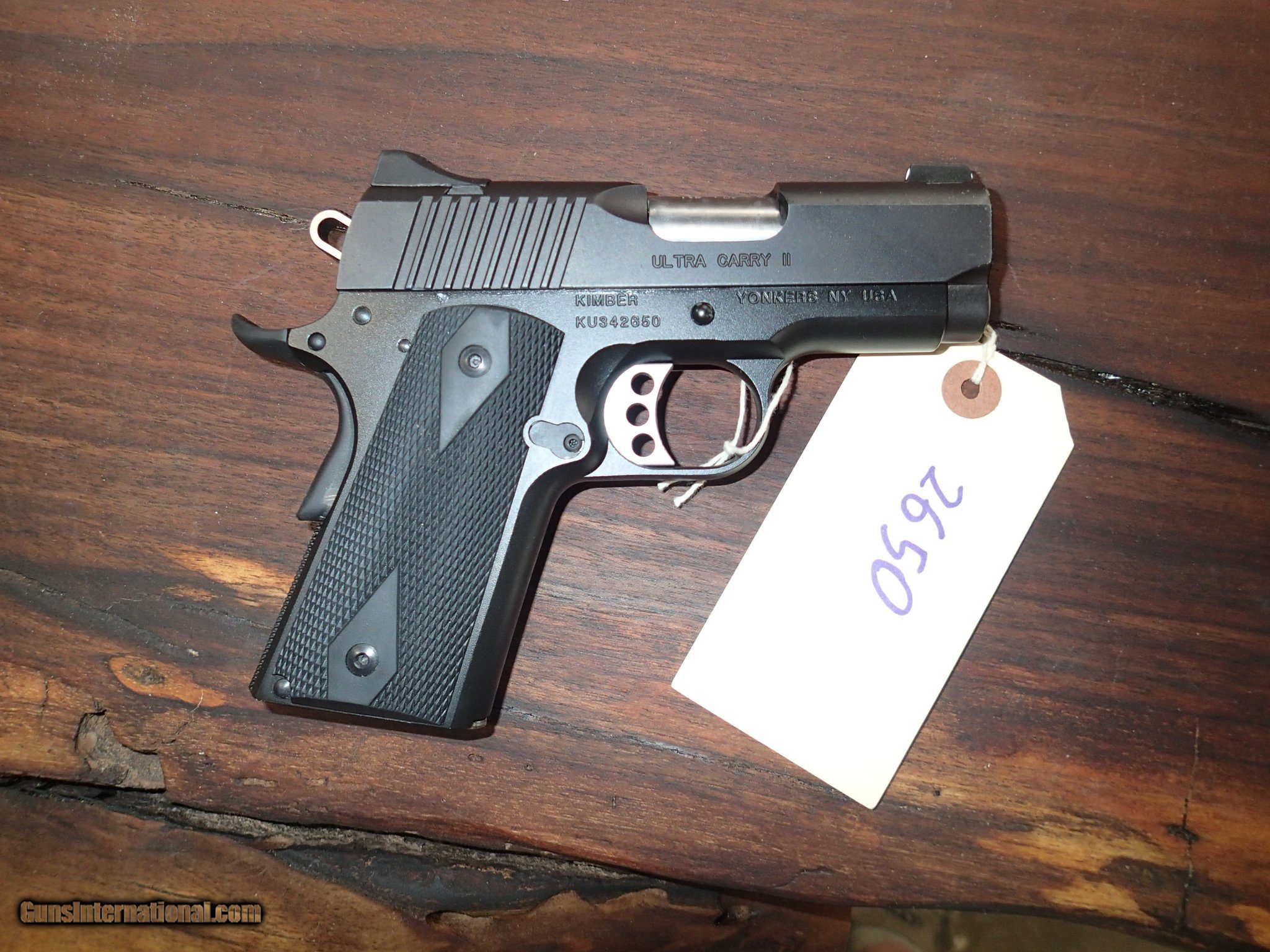 Description: Guns Listing ID: 1289354 Kimber 1911 Ultra Carry II in .45 ACP in Very Good+ condition. Does not have the original box. Comes with one 7 round magazine. SOLD Manufacturer: KIMBER Model: 1911 ULTRA Carry II Caliber Info: .45 ACP Condition: Used - Non-Certified Barrels: 3 BARREL Finish: BLACK |