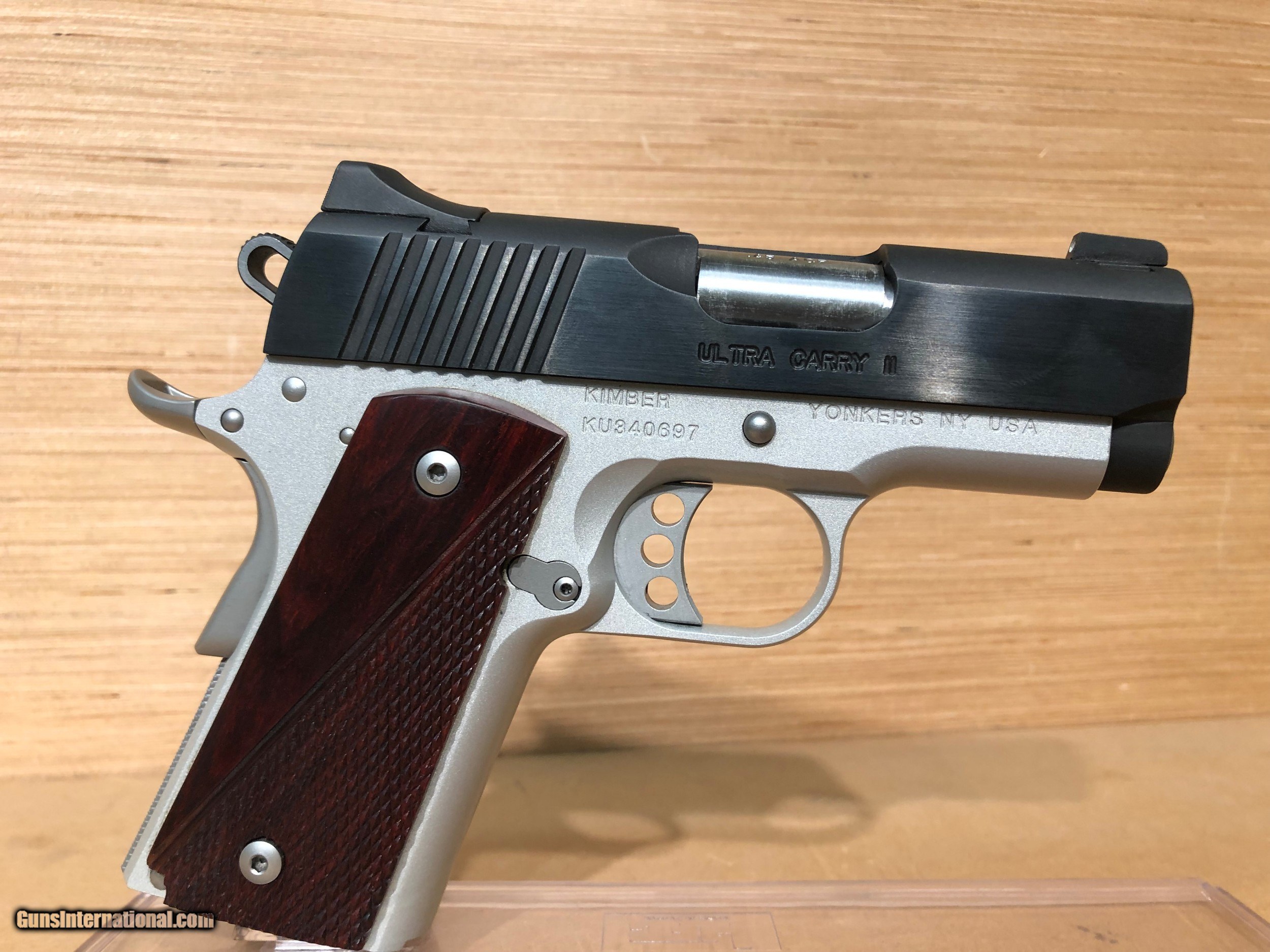 Description: USED, IN GOOD CONDITION Kimber 3200321 Ultra Carry II .45 ACP 3in 7rd Two Tone W/ FACTORY BOX ****PLEASE CALL IN THE WITH THE SELLER’S INVENTORY NUMBER IF INQUIRING ABOUT A FIREARM****** WE DO NOT SHIP FIREARMS AND/OR FIREARMS’ PARTS OUT OF THE 50 UNITED STATES, SO DON’T ASK PRICE REFLECTS PAYMENT BY MONEY ORDER / CASHIERS CHECK. A 3% PREMIUM IS ADDED FOR CREDIT CARDS. WE DO ACCEPT PERSONAL OR BUSINESS CHECKS, BUT THERE IS A 10 DAY GRACE PERIOD ON THEM. Shipping is $40 for handgun and $30 for long gun. Shipping to Alaska and Hawaii will be more based on weight of firearm. WE DO OFFER A LAYAWAY PLAN. YOU CAN LAYAWAY FOR 30, 60, OR 90 DAYS. THERE IS A $5.00 CHARGE FOR EVERY 30 DAYS ITEM IS ON LAYAWAY. WE ALSO REQUIRE A 20% DOWN PAYMENT ON LAYAWAY ITEM. LAYAWAYS ARE NON REFUNDABLE. HERE IS HOW THIS PROCESS WORKS. YOU WOULD CALL US AT 540-337-9218 WITH LISTER # TO PURCHASE THE GUN. THEN ONCE I HAVE RECEIVED PAYMENT AND AN FFL (FEDERAL FIREARMS LICENSE) FROM A LICENSED DEALER IN YOUR AREA OF YOUR CHOICE. WE WILL THEN SHIP THE GUN TO THEM. YOU WOULD THEN PICK UP THE GUN AT YOUR LOCAL DEALER AND DO PAPER WORK THERE. Please have your FFL Dealers contact information when you call. DOMINION OUTDOORS 15 ANGELA COURT FISHERSVILLE ,VA 22939 540-337-9218 540-337-2422 fax M – F 9 to 6 ETZ Sat 9 – 4 ETZ ****PLEASE CALL IN WITH THE SELLER’S INVENTORY NUMBER**** ***PLANO HARD CASES AVAIABLE FOR PURCHASE $19.99 WITH THE PURCHASE OF A FIREARM.** SOLD |