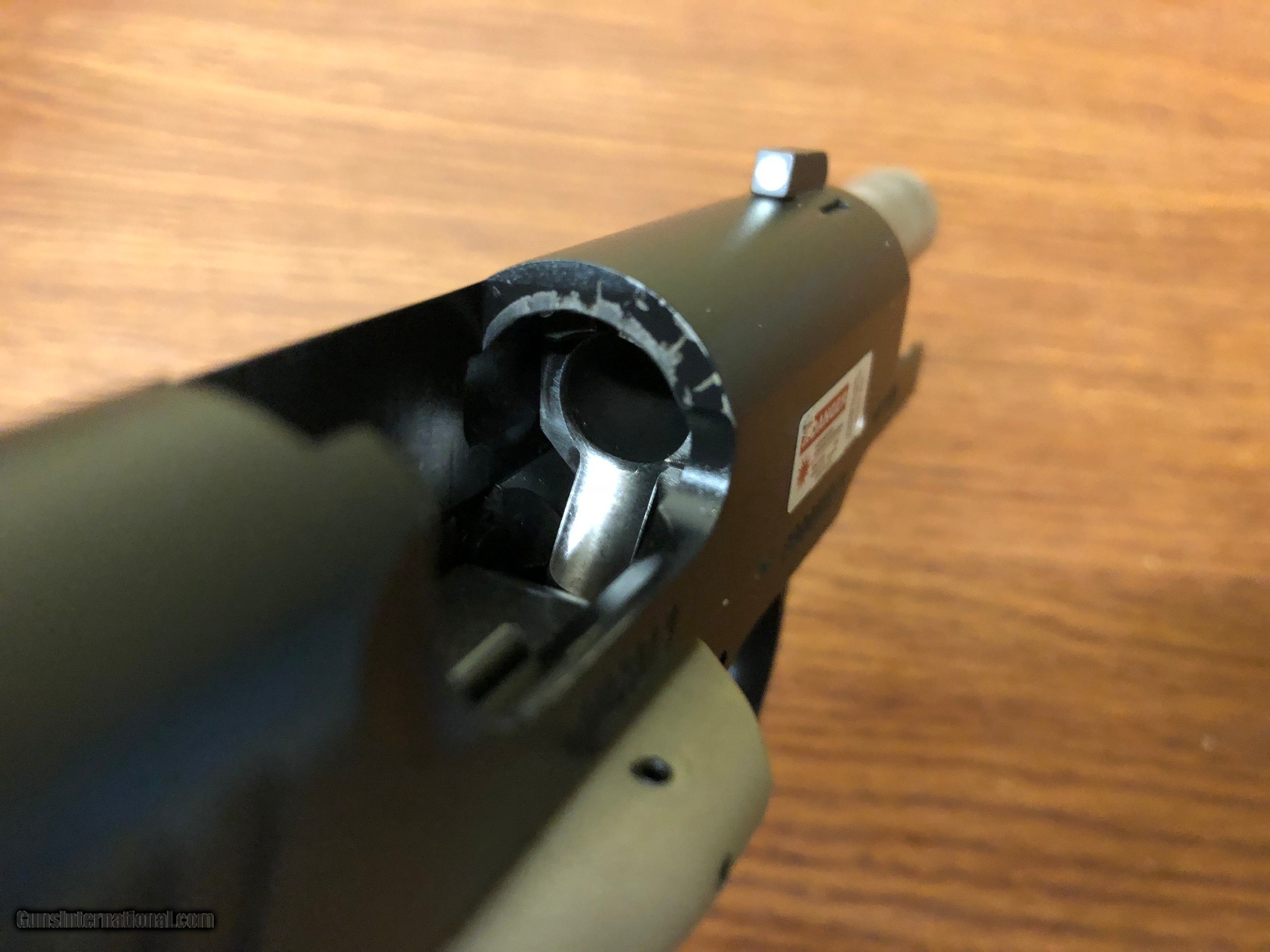 Description: USED, IN GOOD CONDITION Kimber 3300176 Micro 9 (LG) Pistol - 9MM, 3.15 in Barrel, Desert Tan CT Grip, Black Slide WITH FACTORY BOX ****PLEASE CALL IN THE WITH THE SELLER’S INVENTORY NUMBER IF INQUIRING ABOUT A FIREARM****** WE DO NOT SHIP FIREARMS AND/OR FIREARMS’ PARTS OUT OF THE 50 UNITED STATES, SO DON’T ASK PRICE REFLECTS PAYMENT BY MONEY ORDER / CASHIERS CHECK. A 3% PREMIUM IS ADDED FOR CREDIT CARDS. WE DO ACCEPT PERSONAL OR BUSINESS CHECKS, BUT THERE IS A 10 DAY GRACE PERIOD ON THEM. Shipping is $40 for handgun and $30 for long gun. Shipping to Alaska and Hawaii will be more based on weight of firearm. WE DO OFFER A LAYAWAY PLAN. YOU CAN LAYAWAY FOR 30, 60, OR 90 DAYS. THERE IS A $5.00 CHARGE FOR EVERY 30 DAYS ITEM IS ON LAYAWAY. WE ALSO REQUIRE A 20% DOWN PAYMENT ON LAYAWAY ITEM. LAYAWAYS ARE NON REFUNDABLE. HERE IS HOW THIS PROCESS WORKS. YOU WOULD CALL US AT 540-337-9218 WITH LISTER # TO PURCHASE THE GUN. THEN ONCE I HAVE RECEIVED PAYMENT AND AN FFL (FEDERAL FIREARMS LICENSE) FROM A LICENSED DEALER IN YOUR AREA OF YOUR CHOICE. WE WILL THEN SHIP THE GUN TO THEM. YOU WOULD THEN PICK UP THE GUN AT YOUR LOCAL DEALER AND DO PAPER WORK THERE. Please have your FFL Dealers contact information when you call. DOMINION OUTDOORS 15 ANGELA COURT FISHERSVILLE ,VA 22939 540-337-9218 540-337-2422 fax M – F 9 to 6 ETZ Sat 9 – 4 ETZ ****PLEASE CALL IN WITH THE SELLER’S INVENTORY NUMBER**** ***PLANO HARD CASES AVAIABLE FOR PURCHASE $19.99 WITH THE PURCHASE OF A FIREARM.** SOLD |