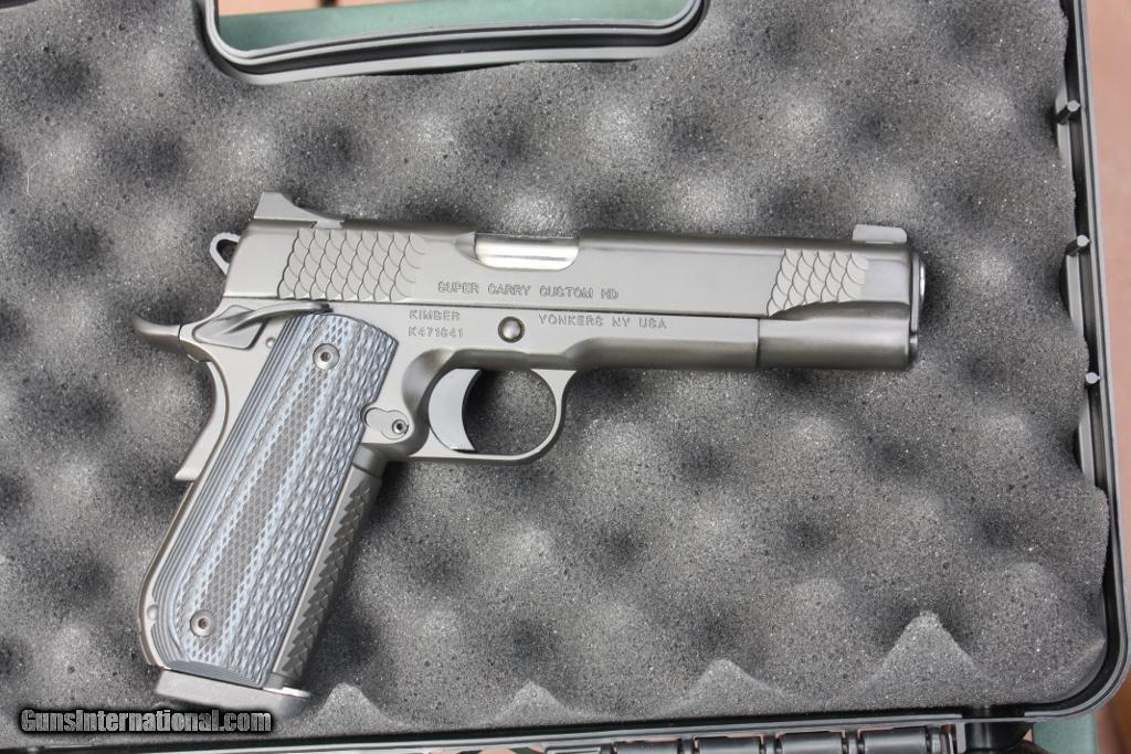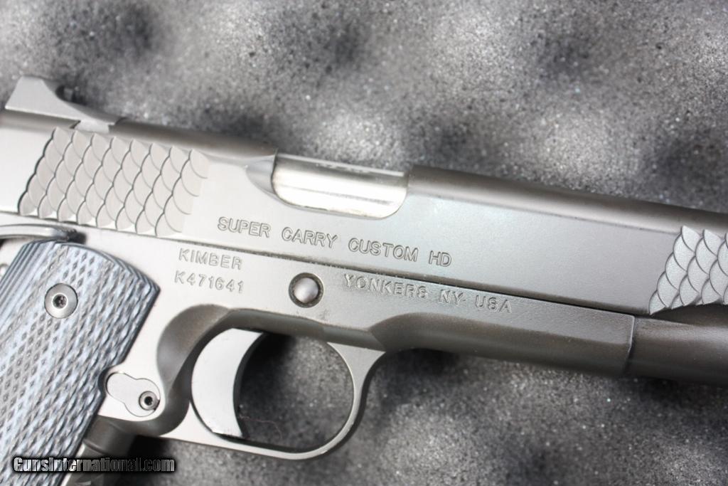 Description: Kimber 45 Custom Shop Super Carry Custom HD New condition Custom Shop 45 white dot adjustable sights 2 spare magazines (total of 3) In hard case with paper work and lock Questions 406-754-2512 this gun lists for $1994.95 new only one mag. We do layaway and payment plans with no fees or interest SOLD |