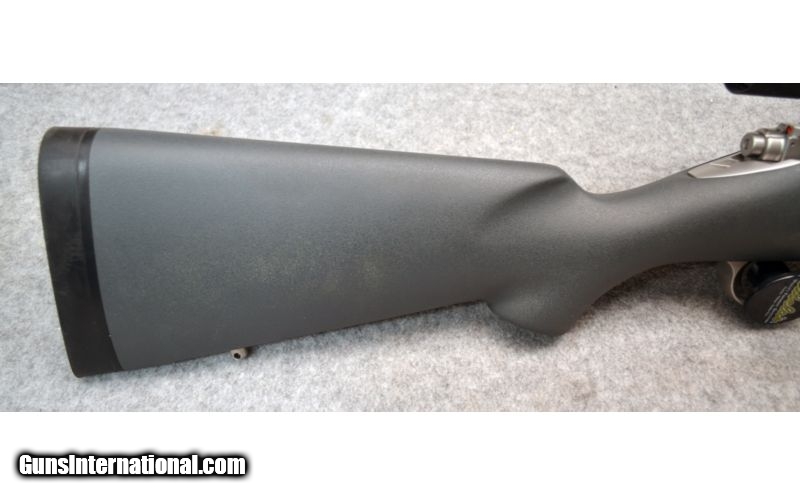 Description: This is an excellent condition Talkeetna edition with minor handling wear on stock. Metal is in excellent condition with one minor spot of finish wear on underside of barrel under front sight. The firearm comes with a Leupold VX-II 2-7x33 scope and quick release rings. SOLD Caliber Info: .375 H&H Magnum Metal Condition: Excellent with minor finish wear spot on barrel under front sight Bore Condition: Excellent Barrels: 24 Stock: Gray textured synthetic stock with very minor handling wear Stock Dimensions: 13 1/2" LOP Fore End: Gray textured synthetic with very minor handling wear Butt Pad: Black rubber XL Decelerator recoil pad with minor handling wear Sights: Front hooded white dot blade, rear adjustable U notch; Leupold VX-II 2-7x33 scope Item Location: Christiana, DE |