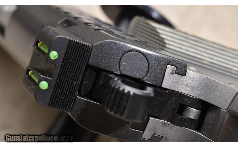 Description: This Aegis Elite Custom .45 ACP has green and red fiber optic sights for a bright sight picture, it has distinctive rear and forward Aegis Elite X (AEX) slide serrations. It appears to have been fired minimally. Shows no visible handle marks. .45 Auto SOLD Chambers: 8 Metal Condition: Excellent. Wood Condition: Excellent. Bore Condition: Bright and shiny with crisp rifling. Barrels: 5 Inches. Triggers: Premium aluminum. Factory setting (approximate pounds): 4.0 - 5.0 Stock Dimensions: 8.7 Inches. Butt Pad: G-10 Weight: 39 OZ. Sights: Fiber optic front and rear sights. Item Location: Rogers |