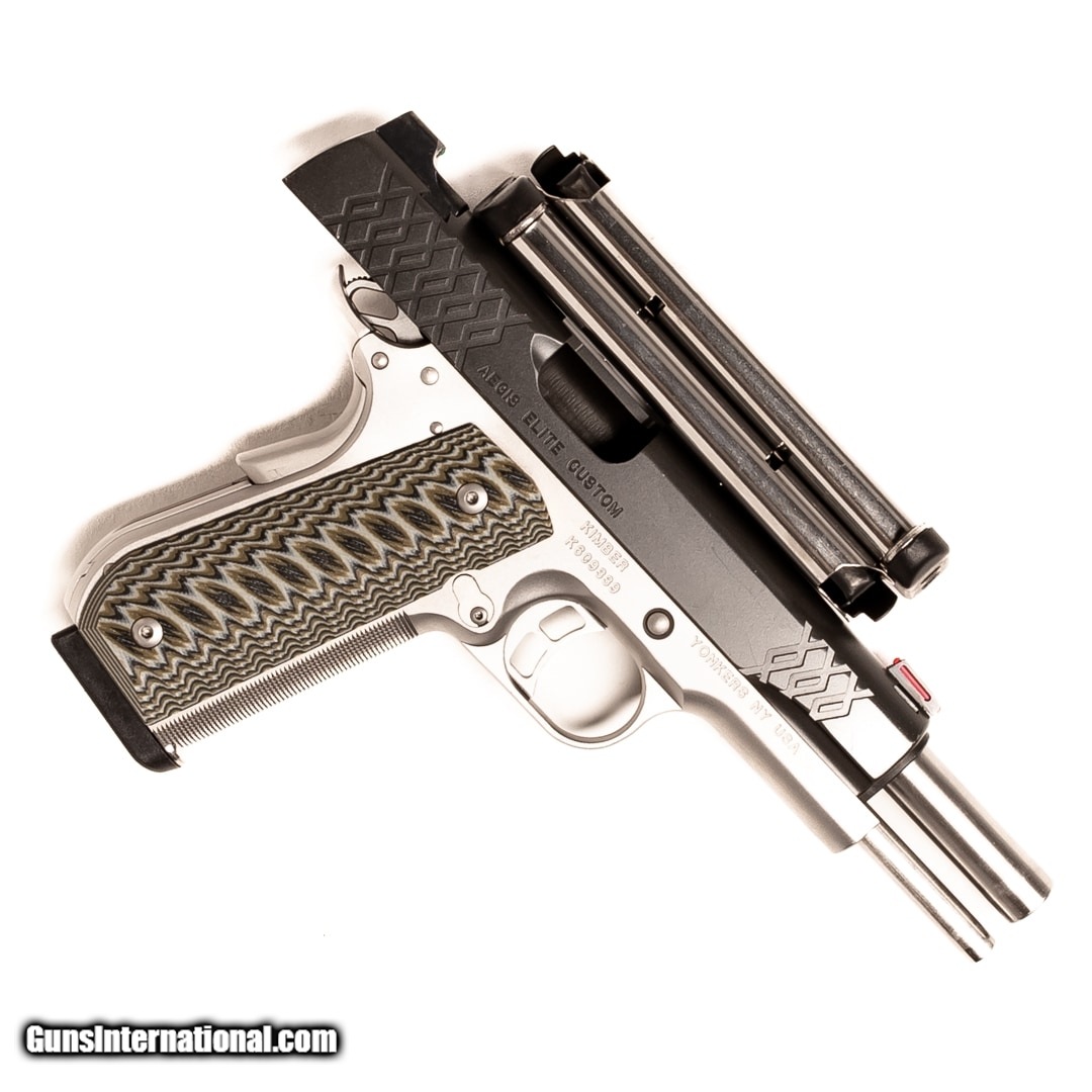 Description: Guns Listing ID: 781432 Offered for sale is a Kimber Aegis Elite Custom. It‚‚s everything you‚‚d want in a top-of-the-line 1911. Purchase includes the original case, owner‚‚s manual, three 8-round magazines, and a bushing tool. Get the best bang for your buck when you get a Certified Used Firearm . When you see the Certified Used stamp on any of our firearms, you can be confident that you’re getting exactly what you want – a gun only in very good to excellent condition and held to the highest quality standard. All Certified Used Guns come with a ‘no questions asked’ return policy . PLUS, ALL CERTIFIED USED GUNS SHIP FR SOLD Manufacturer: KIMBER Model: AEGIS ELITE CUSTOM Caliber Info: .45 ACP Condition: Used - Certified Barrels: 5 BARREL Finish: BLACK |