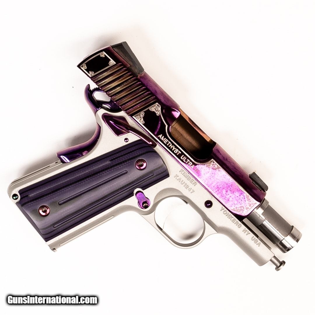Description: Guns Listing ID: 537744 The Kimber Amethyst Ultra II is a striking personal defense handgun that combines vibrant style with a host of performance-enhancing features. This pistol is everything you‚‚d expect from Kimber fine materials, superior quality, and ultimate reliability wrapped up in beautiful amethyst accents. It‚‚s equipped with night sights and includes the original case, manual, and one 8-round magazin SOLD Manufacturer: KIMBER Model: AMETHYST ULTRA II Caliber Info: .45 ACP Condition: Used - Certified Barrels: 3 BARREL Finish: PURPLE |
