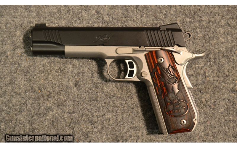 Description: Built on the always reliable 1911 platform, this particular Kimber pistol has a beautiful two-tone finish with custom engraved rosewood grips. Designed to be a wilderness companion, this powerhouse pistol is ideal for a hiker, hunter, or any other outdoor enthusiast. 10mm Auto SOLD Metal Condition: Excellent Bore Condition: Excellent Barrels: 5 Weight: 2.5 lbs Sights: Fixed Night Sights Item Location: Thornton, CO |