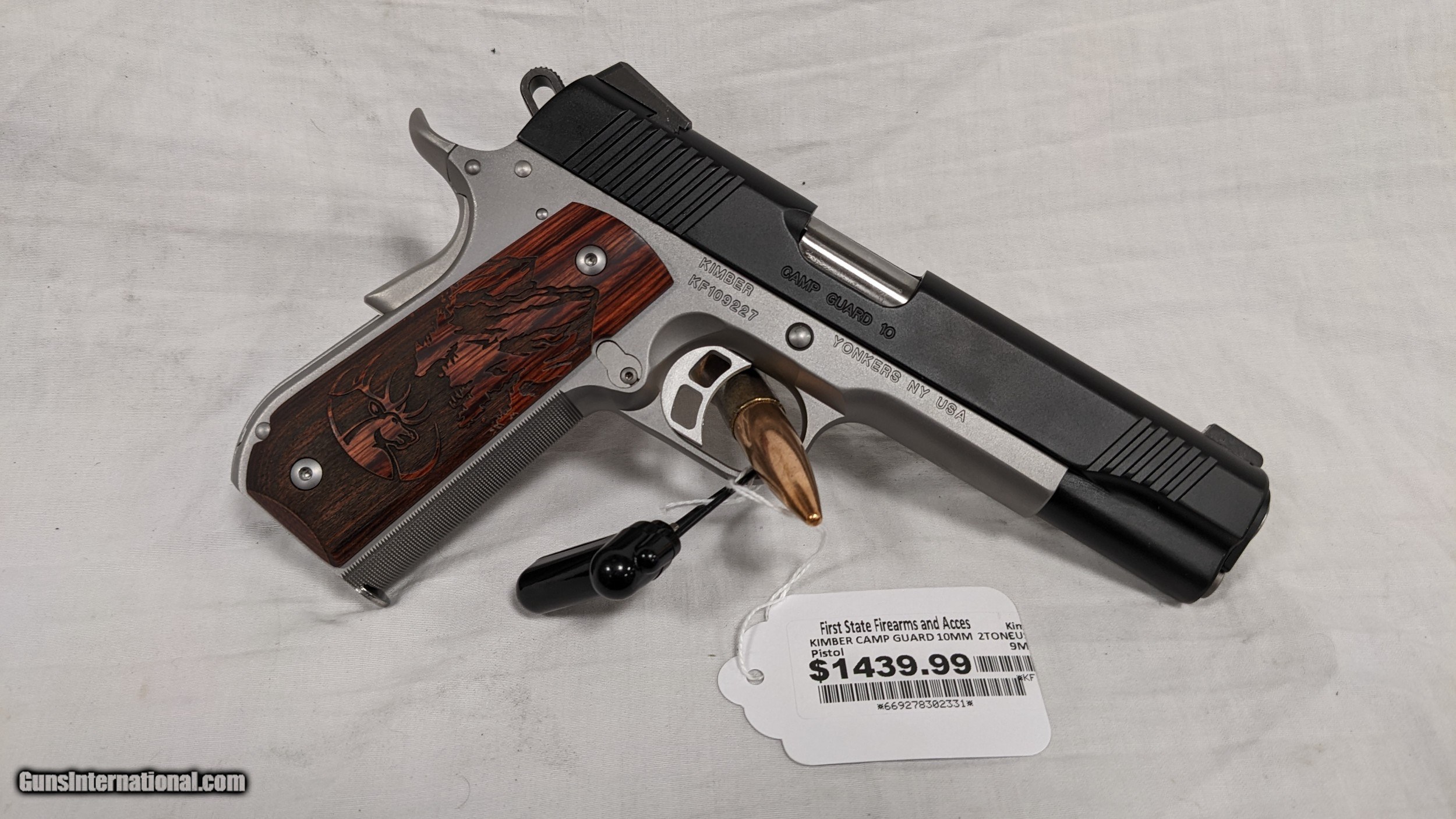 Description: While we do not test fire our used firearms, we perform an inspection and function check to determine the firearm is fully functional to the best of our ability. Please call with any questions. If you are interested in purchasing this item, please give us a call. Please have the "Seller #" and/or "Guns International #" ready along with the contact information for the FFL you'd like the item shipped to. For Sale from First State Firearms & Accessories AKA The Gun Shop in New Castle, DE. Shipping is $25.00. SOLD Handgun Caliber: 10mm Auto Manufacturer: KIMBER Model: 1911 CAMP GUARD Serial Number: KF109227 Condition: USED, VERY GOOD Action: SEMI-AUTO |