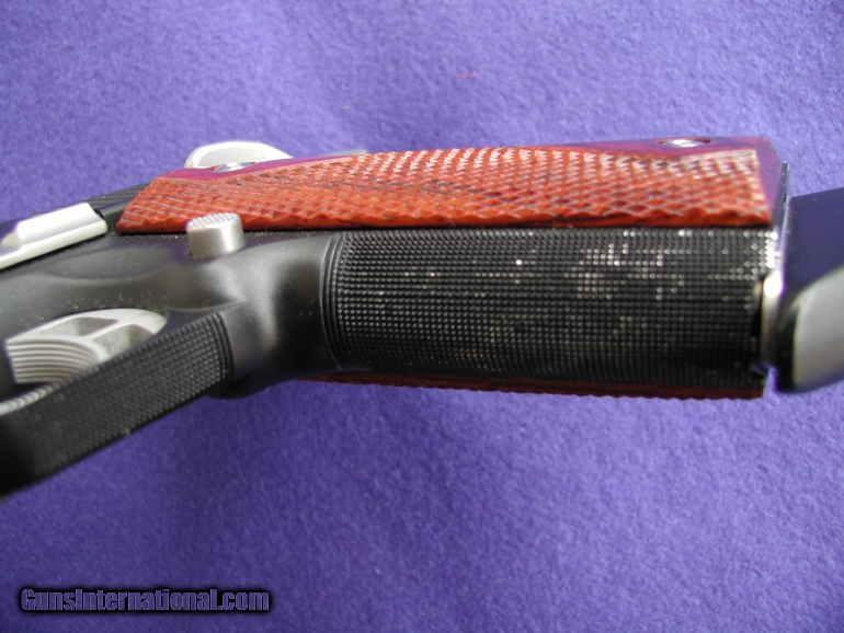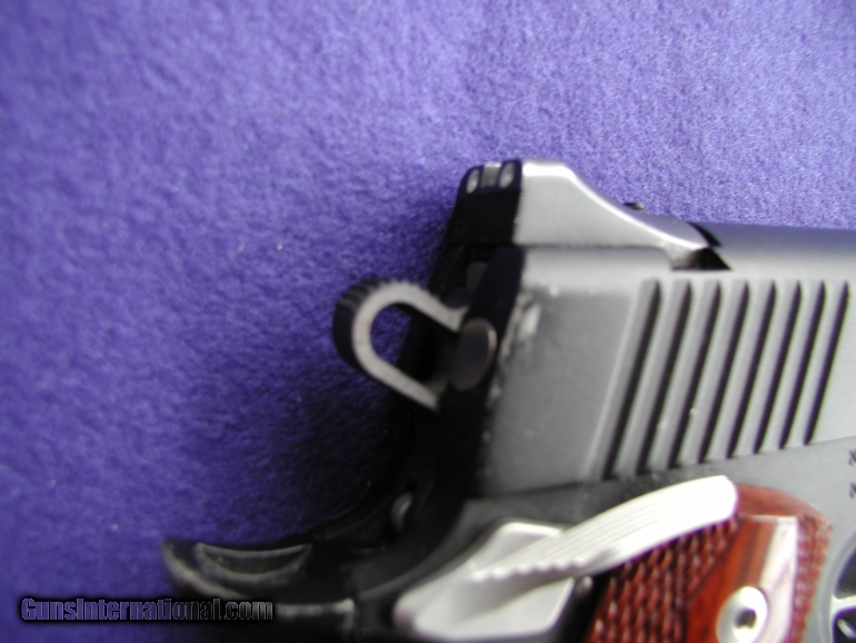 Description: *REDUCED* This Kimber Custom Defensive Pistol, is in 97-98% overall condition. All of the marks on the finish are either from holster wear or a ring rubbing on the front grip strap. Mechanically the pistol is mint and has been lightly fired. It was the 'off duty' carry of an ATF agent, now retired. When new, the pistol was returned to Kimber to have their excellent Kim Pro II finish applied to the slide, as well as the frame. The pistol features Ambidextrous thumb safety, Carry melt treatment, Full-length guide rod, Front and rear grip strap checkering, as well as checkering under the trigger guard, Light-weight aluminum frame, Stainless slide, Three inch barrel(excellent bore), Double diamond Rosewood grips and Factory night sights. The pistol ships in the factory plastic case along with the take-down tool, owners manual, lock, hang tag and two magazines. One factory Kimber stainless mag(as shipped) and one blued Colt officer's magazine. As close to perfect as a big-bore carry gun gets... Please remit funds by Postal Money Order and include $35.00 shipping/insurance to continental U.S., along with a signed copy of the license of the FFL you would like it shipped to. All listed prices are cash. If the buyer elects to use a credit card there will be a 4% surcharge on the entire payment. NO TRADES, PLEASE! ALL EMAILING/CORRESPONDENCE WILL BE THROUGH G/I SYSTEM. YOU MUST CONTACT ME TO CONFIRM YOUR INTENT TO PURCHASE AND THE MANNER OF PAYMENT. RETURNS ARE ACCEPTABLE ONLY IF THE FIREARM IS RETURNED IN EXACTLY THE CONDITION IN WHICH IT WAS SHIPPED. SHIPPING COST IS NOT REFUNDABLE. SOLD |