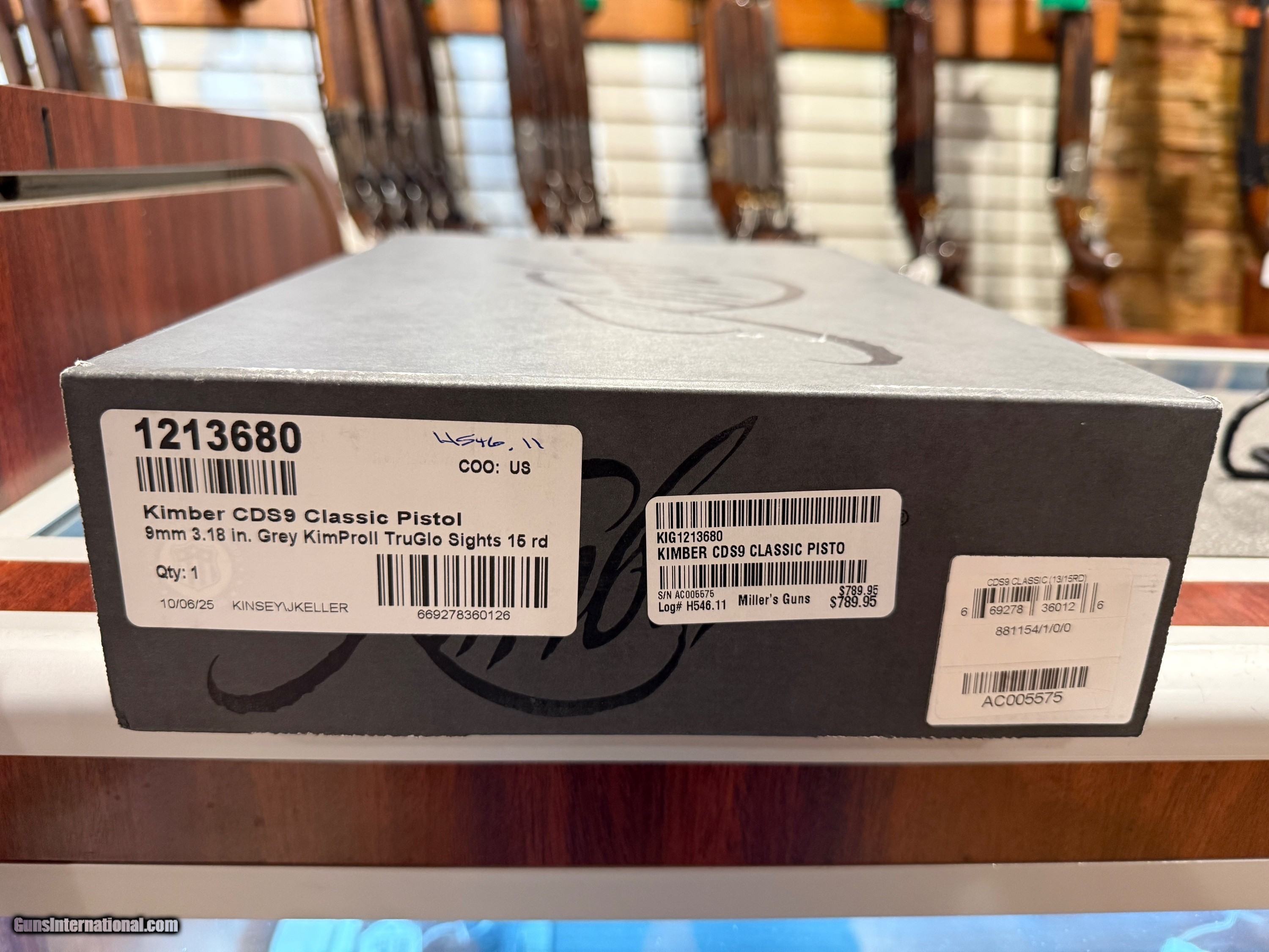 Description: Kimber CDS-9 Classic 9mm SAO 15 round capacity (2) magazines included Handgun Caliber: 9x19mm Parabellum (9mm Luger, 9x19mm NATO) Manufacturer: Kimber Model: CDS-9 Classic Serial Number: AC005575 Barrel Length: 3.18 Condition: NEW Price: $789.95 Contact Seller |