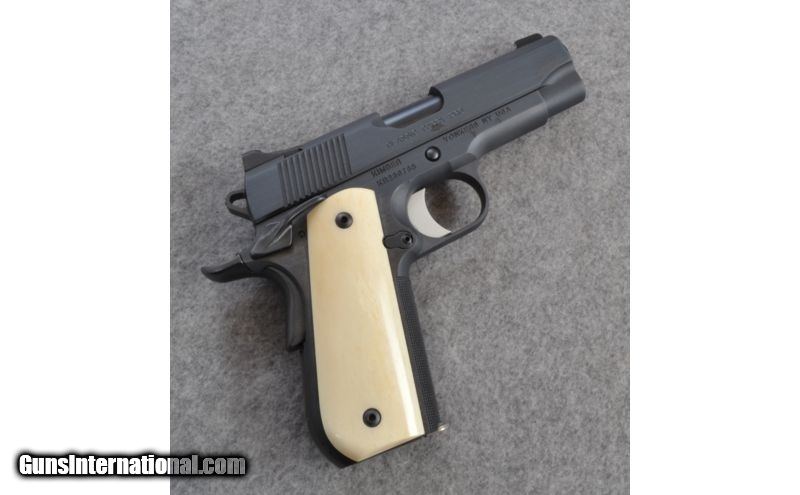 Description: Kimber Classic Carry Pro model in .45 ACP in near mint condition. Features bone grips which are also in mint condition. SOLD Manufacturer: S/N KR23738 Caliber Info: .45 ACP Metal Condition: Excellent condition. Wood Condition: Bone grips are in very good condition. Bore Condition: Excellent. Bright and Shiny, good rifling, no pitting or rust noted. Barrels: 4 Inches. Weight: 2 Lbs 6 Oz Sights: Fixed 3-dot night sights. Extras: Includes box and 1 magazine. Item Location: Lone Tree, CO |
