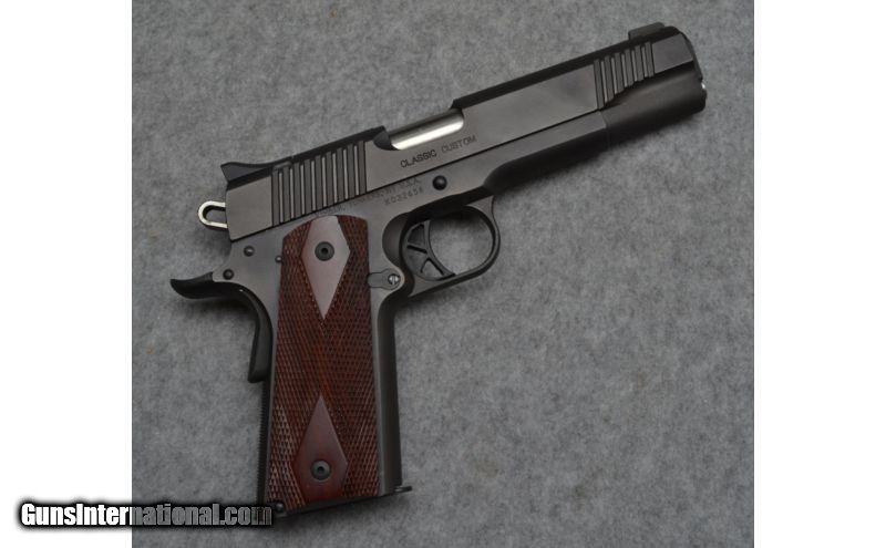 Description: SOLD Caliber Info: .45 ACP Metal Condition: Good with Light Handling Marks Wood Condition: Good Grips Bore Condition: Shiny and Bright Barrels: 5 Inch Triggers: Factory Trigger Stock: Walnut Checkered Grips Weight: 2.4 lbs Sights: Factory Fixed Sights Extras: Factory Case and 1 Two Magazines Item Location: Woodbury, MN |