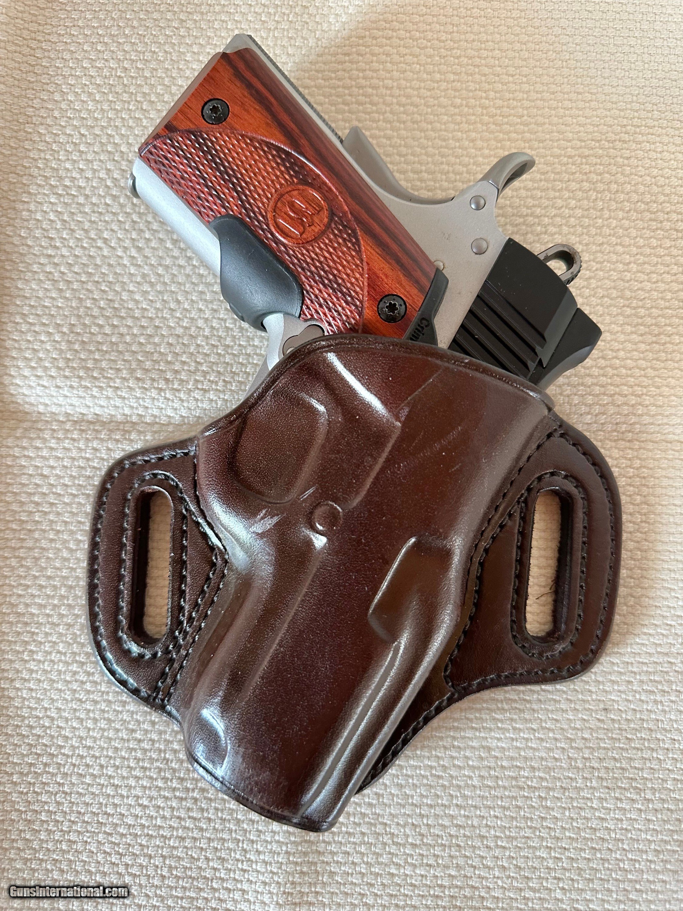 Description: I purchased this Kimber .45 ACP pistol several years ago with the intention of using it as a concealed carry gun. However, I continued carrying my Glock 19, instead, choosing not to risk holster rash on such a great finish. It's not as if I really needed another carry-gun, though I have put around three dozen rounds through this beauty, and I love the way it handles. It's been fitted with a set of Crimson Trace rosewood laser grips too. Terrific gun indeed, Please enjoy perusing the attached photos! Handgun Caliber: .45 ACP (.45 Auto) Manufacturer: Kimber Model: Ultra Carry II Serial Number: KU212485 Barrel Length: 3 Condition: Excellent Metal Condition: Excellent Wood Condition: Excellent Bore Condition: Excellent Weight: 25 oz. Sights: Fixed, low profile, 3 Dot Extras: Galco OWB leather holster, Rt. hand Case: Kimber plastic case Grips: Crimson red Dot Later Grips Optic: Fixed, Low Profile, 3 Dot Price: $695.00 Shipping: $24.75 Buy Now Contact Seller |