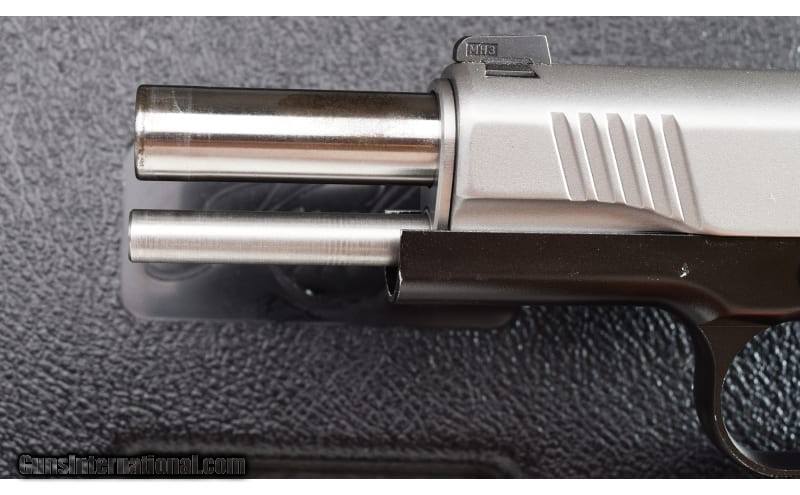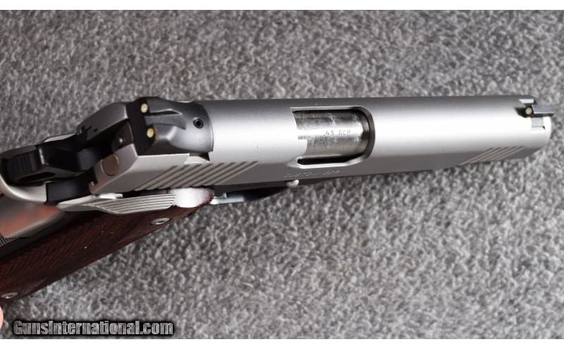Description: This Kimber Custom CDP II in .45 Auto remains in very good overall condition. There is some oxidation on the slide near the ejection port and some oxidation on top of the barrel. Some scratches are present on the frame near the slide stop. These are most commonly caused by disassembling the pistol. This 1911 features three dot nite sights and a full length guide rod. The original factory box and one (1) factory magazine are included. .45 Auto SOLD Metal Condition: Very Good Wood Condition: Excellent Bore Condition: Excellent Barrels: 5 Triggers: Factory Skeletonized Trigger Butt Pad: Checkered Two Panel Grips Weight: 2LBS Sights: Three Dot Nite Sights Item Location: Wheeling |