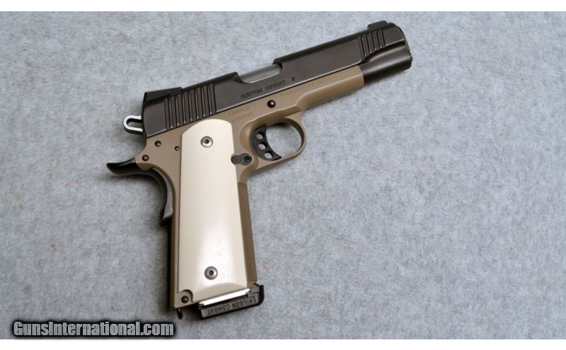 Description: This Kimber Model Custom Covert II is a semi-auto pistol in .45 ACP Cal. It has a 5 inch barrel, black slide and tan frame. In overall very good condition it comes with one 8 round magazine. This would make a nice addition to a 1911 collection. SOLD Manufacturer: Newer production. Caliber Info: .45 ACP Chambers: Semi-Auto. Metal Condition: Very good with few handling marks. Wood Condition: Grips are in excellent condition. Bore Condition: Very good, bright and shiny. Barrels: 5 inch stainless steel. Triggers: Factory. Stock: Smooth polymer grips. Weight: 40 ozs. Sights: Blade front. Notch rear. 3 dot night sights. Item Location: Hazelwood, MO |
