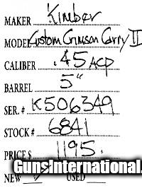 Description: Kimber Custom Crimson Carry II .45acp SOLD Serial Number: K506349 Barrels: 5 |