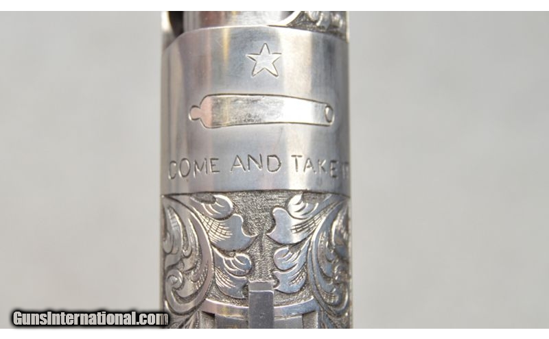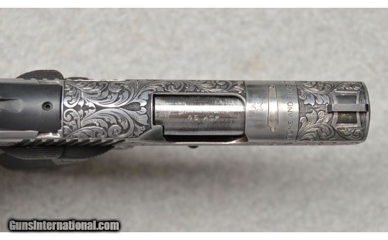Description: Beautiful Kimber Ultra Carry with masterful scroll work with 98% coverage. Hand engraved and features Gonzales Flag on the top of the slide and only minor ding is on the rear sight. .45 ACP SOLD Metal Condition: Excellent as Professionally Embellished Wood Condition: Excellent Bore Condition: Clean Barrels: 3 Weight: 1 LB 9 OZ Item Location: Fort Worth, TX |