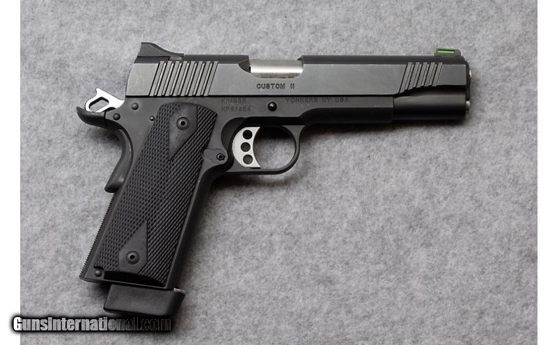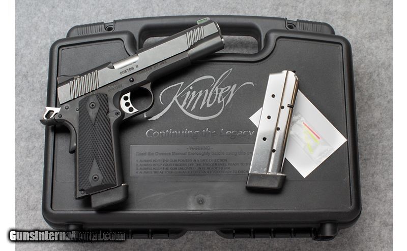 Description: "Setting the standard against which all other 1911 models are measured, the Custom II offers no-nonsense features that promote intuitive operation and absolute dependability." Kimber America This Custom II features black synthetic double diamond grips, a beavertail grip safety, and a thumb safety on the left side. 2.5 lbs. 10mm Auto SOLD Chambers: 7 round magazine Barrels: 5 inch match grade barrel Triggers: SA Weight: 2.5 lbs Sights: TRUGLO sights Item Location: Farmington, UT |