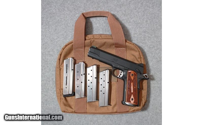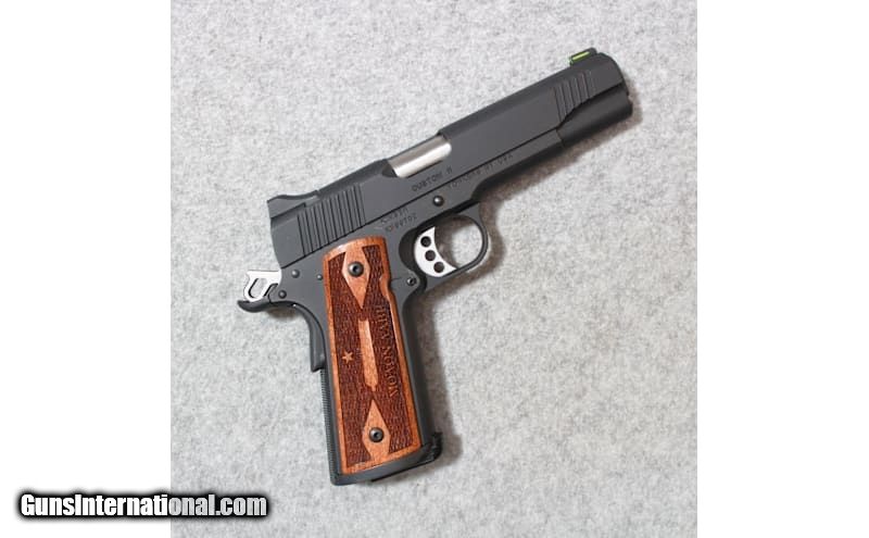 Description: Kimber Custom II single action, semiautomatic pistol, chambered in 10mm Auto. It has a 5" stainless steel barrel with front and rear slide serrations. The front sight is green fiber optic, and the rear sight is a fixed black u-notch with white dots. The trigger and hammer are skeletonized, and the frame and slide are matte black. Includes a soft case, five magazines, and manual. Free shipping to any Bass Pro Shops or Cabela's store. 10mm Auto SOLD Metal Condition: Good with Minor Handling Marks Wood Condition: Very Good Bore Condition: Bright And Clear Barrels: 5 inch Triggers: Single Action Weight: 38 oz Sights: Front: Green Fiber Optic / Rear: Fixed Black U-Notch with White Dots Item Location: Allen, TX |