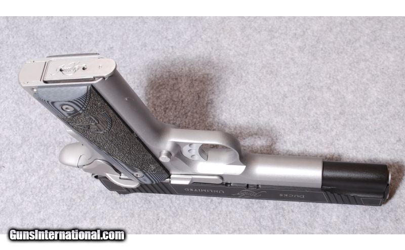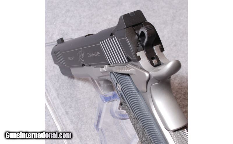 Description: Ducks Unlimited edition 1911. It's been fired but not a lot. Comes with the original hard case. SOLD Caliber Info: .45 ACP. Metal Condition: Very Good Bore Condition: Very Good Barrels: 5 Triggers: Factory. Weight: 2.5 lbs Sights: Open fixed Extras: Original hard case Item Location: Rapid City, SD |