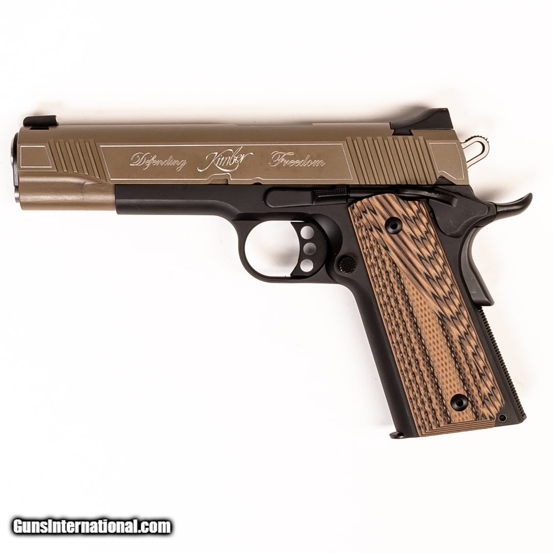 Description: Guns Listing ID: 432668 The Kimber Custom II is a modern 1911 designed for tactical use. It is also perfect for self-defense and can take a beating while still performing flawlessly. This special edition Custom II has \"2018 NRA Gun of the Year\" on the right side of the slide and \"Defending Freedom\" on the left side. It comes in a custom walnut display case and a matching 1911 Sidekick Fighter knife from Silver Stag. The owner‚‚s manual, one 7-round magazine, and a bushing tool are also included SOLD Manufacturer: KIMBER Model: CUSTOM II 2018 NRA GUN OF THE YEAR Caliber Info: .45 ACP Condition: Used - Certified Barrels: 5 BARREL Finish: TWO-TONE STAINLESS |