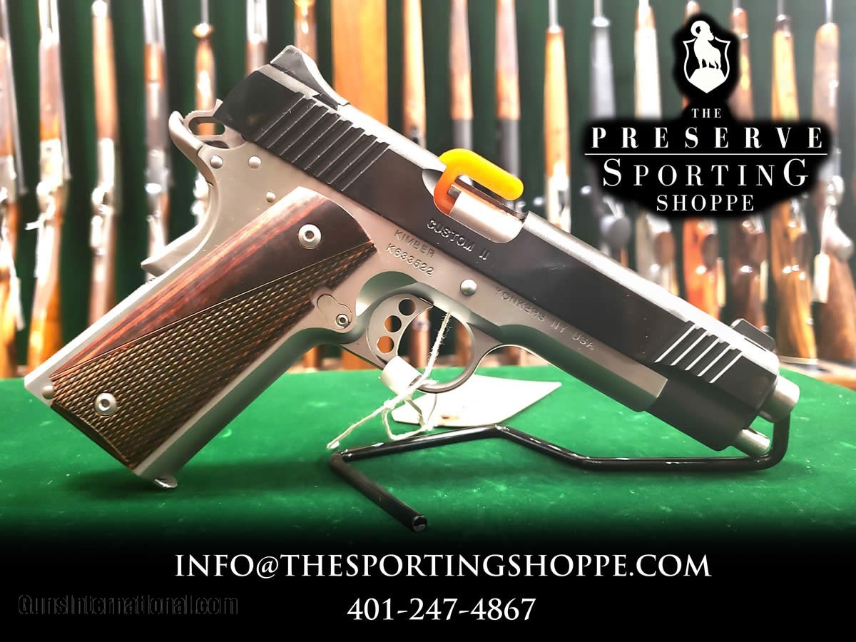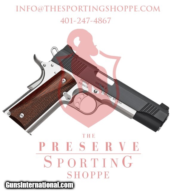 Description: One of the finest all-around pistols available from Kimber, complete with a brushed-polished carbon slide, stainless steel frame and rosewood grips. Specifications: Height (inches) 90° to barrel: 5.25 Weight (ounces) with empty magazine: 38 Length (inches): 8.7 Magazine capacity: 7 Magazine well Recoil spring (pounds): 16.0 Full-length guide rod Frame: Material: Stainless Steel Finish: Brush polish Width (inches): 1.28 Slide: Material: Steel Finish: Brush polished, black Front serrations Barrel: Length (inches): 5 Material: Stainless steel, match grade Stainless steel match grade bushing Twist rate (left hand): 16 Sights: Fixed low profile Radius (inches): 6.8 Grips: Smooth/ checkered Rosewood Trigger: Aluminum, three hole standard Factory setting (approx. lbs): 4.0 - 5.0 SOLD Manufacturer: Kimber Model: Custom II (Two-Tone) Serial Number: 669278323015 Caliber Info: .45 ACP Condition: Factory New |