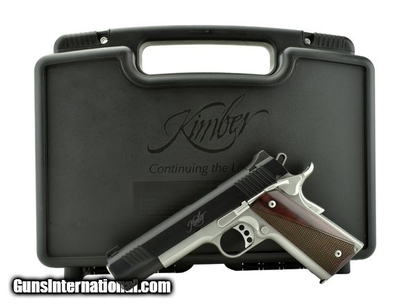 Description: Kimber Custom II 45 ACP caliber pistol. 5” Model with 2-tone finish and wood grips. Excellent condition with box.