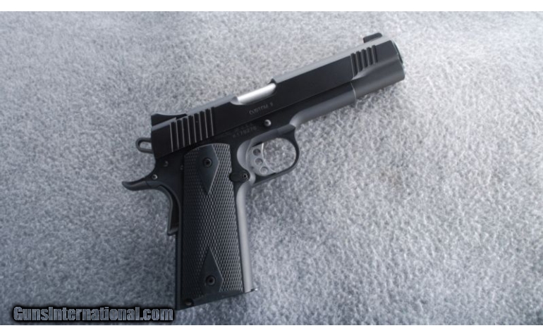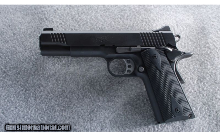 Description: This gun has front and rear cocking serrations, a beavertail grip safety, a commander style hammer, a full length guide rod, and a lowered/flared ejection port. The barrel and bushing are match grade stainless steel. SOLD Caliber Info: .45 ACP Metal Condition: Near New Wood Condition: Near New Bore Condition: Near New Barrels: 5" match grade stainless barrel. Triggers: Single Action. Match grade. Stock: Rubber double diamond grips. Butt Pad: Checkered, flat mainspring housing. Weight: 2 lbs. 3 oz. (Empty without magazine.) Sights: Fixed - Blade front with a notch rear. Extras: Box, magazine, and bushing wrench. Item Location: Gonzales, LA |