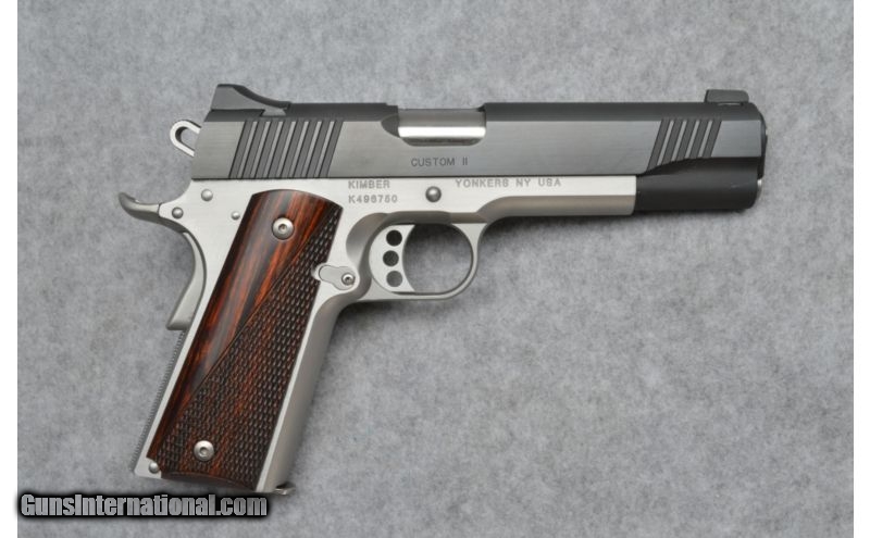 Description: Accuracy and dependability right out of the box. Kimber is the most popular 1911 pistol in the world and the Custom family is where it all began. SOLD Caliber Info: .45 ACP. Chambers: 7 Rounds. Metal Condition: Like new Two tone. Wood Condition: Like new good color and wood graine Bore Condition: Like new bright. Barrels: 5 Inches. Triggers: Single Single action. Stock: Like new 1/2 diamond pattern 1/2 smooth Weight: 2 Pounds 5 Ounces. Sights: Fixed. Item Location: Noblesville, IN |