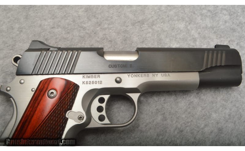 Description: This full-size, .45 ACP, two-tone Kimber Custom II features a 5-inch barrel, stainless frame, matte slide, and rosewood grips, and it comes with one 7-round magazine. Although lightly used, this firearm does not come with a box or any additional accessories. Please note some minor surface rust on the bottom of the trigger guard. .45 ACP SOLD Barrels: 5 inch Weight: 2 lbs Item Location: West Chester, OH |