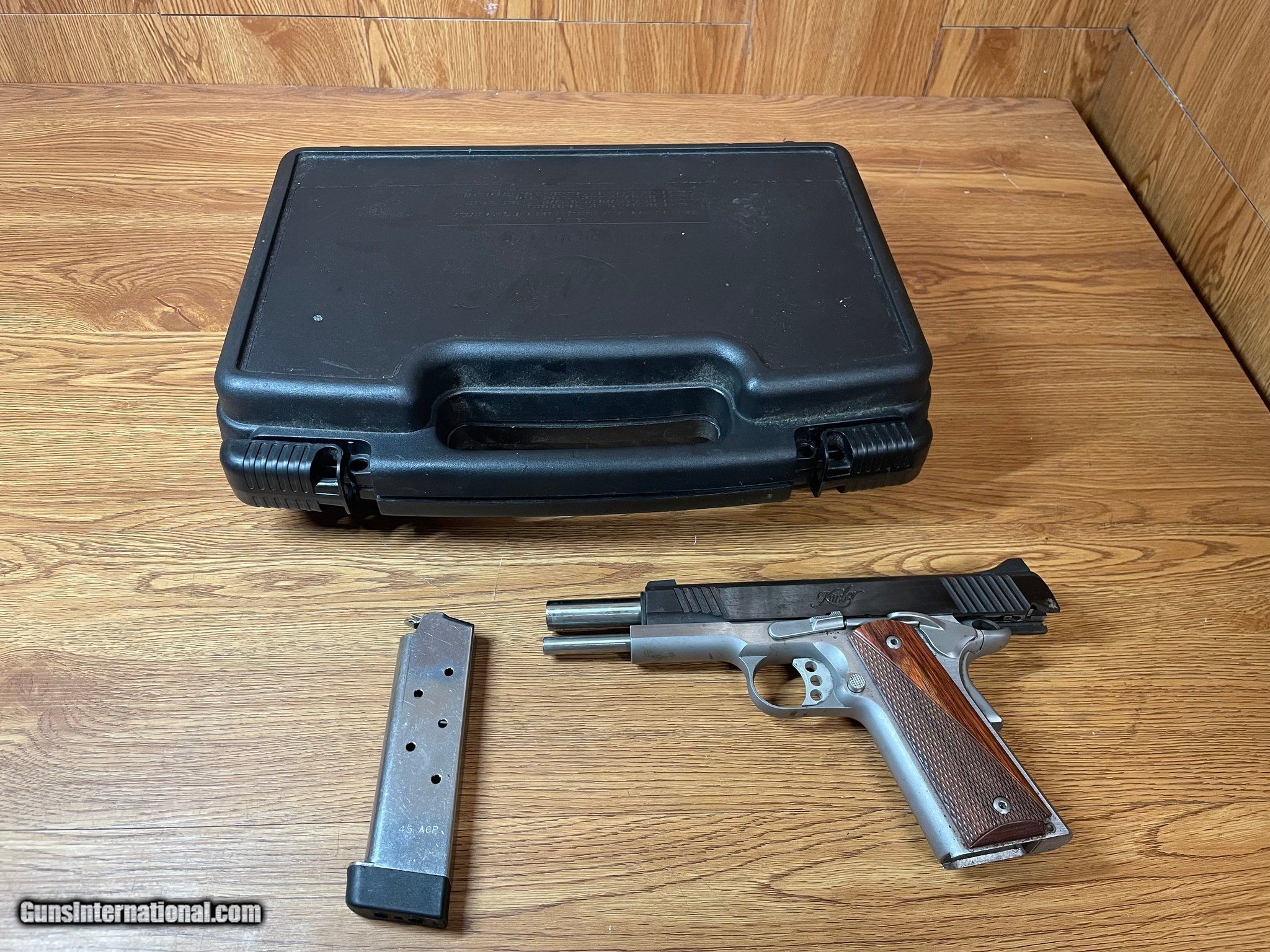 Description: Guns Listing ID: 473981 mys The Kimber 1911 Custom II is a premium semi-automatic handgun known for its high performance, precise craftsmanship, and sleek design. This particular model is chambered in .45 ACP, providing powerful stopping power, and features a 5-inch barrel that enhances accuracy and range. Its full-sized frame is constructed from stainless steel, offering both durability and resistance to corrosion. The Custom II boasts a match-grade trigger, which provides a smooth, crisp pull, ideal for both tactical and competitive shooting. This firearm shows signs of use, with some wear marks visible on the frame and slide, indicative of normal handling and shooting. There is also light rust in some areas, , though it doesn‚‚t impact the gun‚‚s overall function. Despite these cosmetic imperfections, the Kimber 1911 Custom II still operates reliably and efficiently. The pistol comes with a hard case for secure storage and transport. The case is robust, providing adequate protection from external damage, but may also show some signs of wear from frequent use. Whether for collection, sport, or self-defense, this Kimber 1911 Custom II remains a solid, dependable choice for enthusiasts and professionals alik SOLD Manufacturer: KIMBER Model: Custom II Condition: Used - Non-Certified Barrels: 5.5 Gauge Info: .45 ACP Finish: 2-tone |