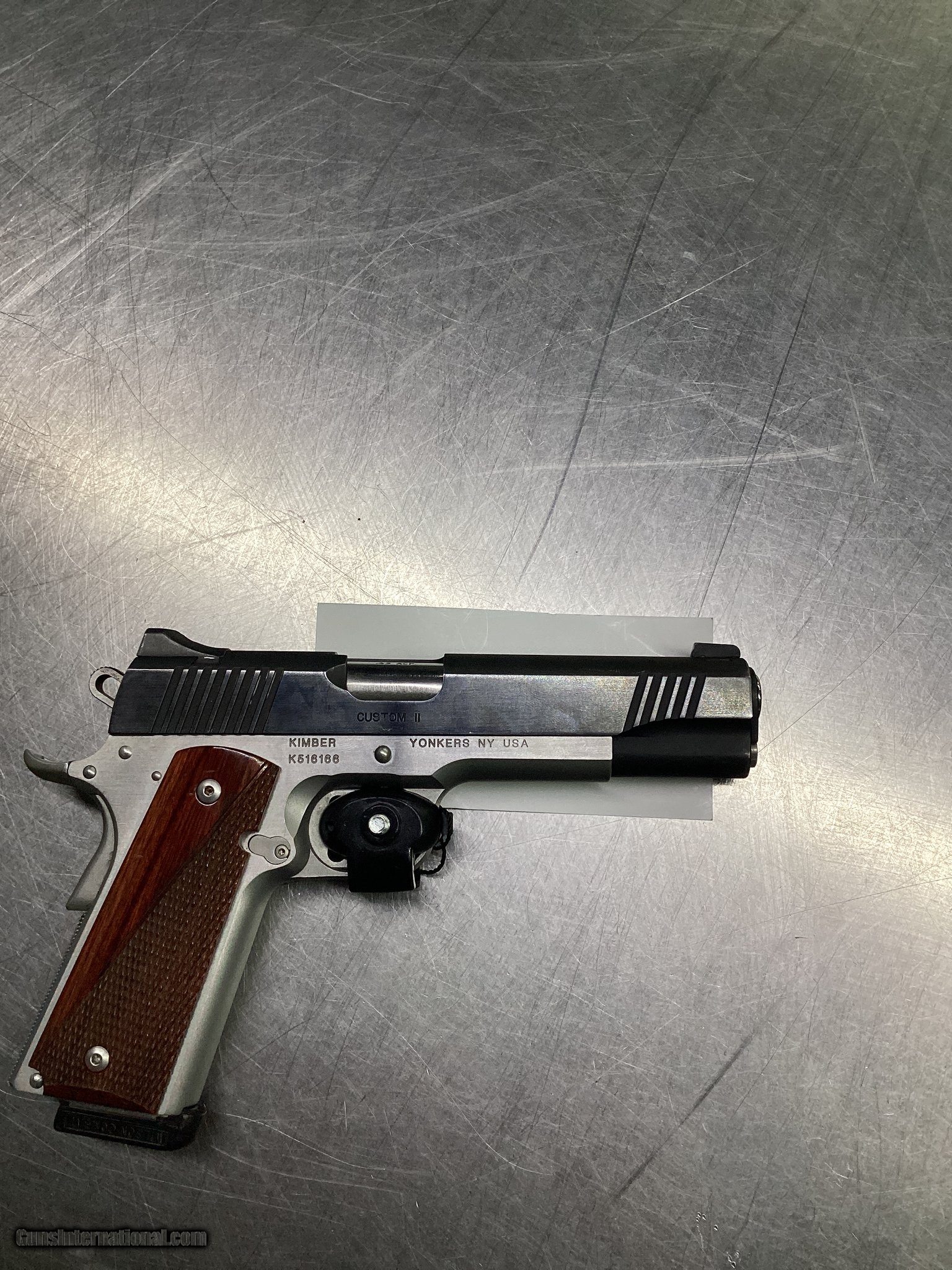 Description: Guns Listing ID: 487580 The Custom II Two-Tone Semi-Auto Pistol features a brush-polished steel slide finished in matte black, and a brush-polished stainless steel frame. Two mag no case or bag great condition SOLD Manufacturer: KIMBER Model: Custom II Caliber Info: .45 ACP Condition: Used - Non-Certified Barrels: 5 BARREL Finish: black and stainless |