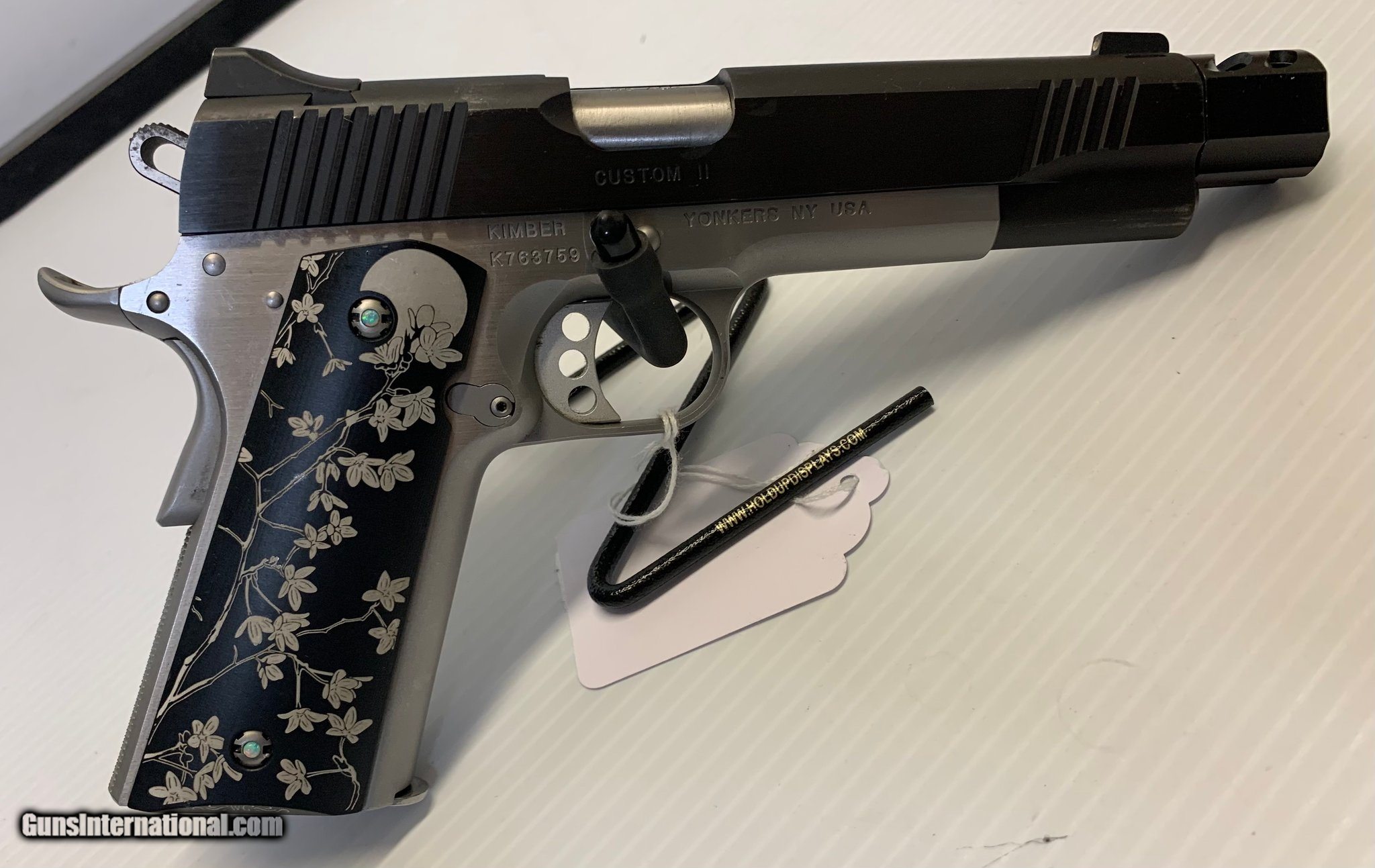 Description: Guns Listing ID: 500328 This pistol is in nice condition and comes with 1 Kimber 7-rd mag. Thanks for looking. SOLD Manufacturer: KIMBER Model: Custom II Caliber Info: .45 ACP Condition: Used - Non-Certified Barrels: 5 Action: SEMI AUTOMATIC Finish: black & stainless |
