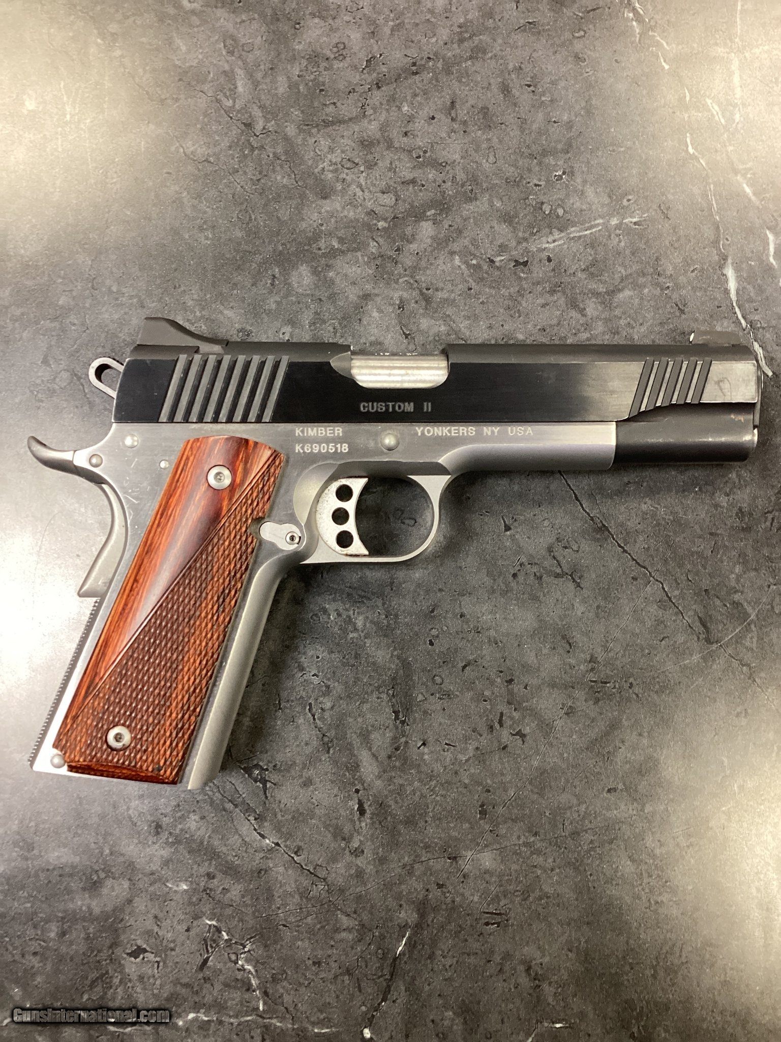 Description: Guns Listing ID: 536545 1 firearm, 1 mags, hard case SOLD Manufacturer: KIMBER Model: Custom II Caliber Info: .45 ACP Condition: Used - Non-Certified Barrels: 4.75 BARREL Action: SEMI AUTOMATIC Finish: ALUMINUM AND BLACK |