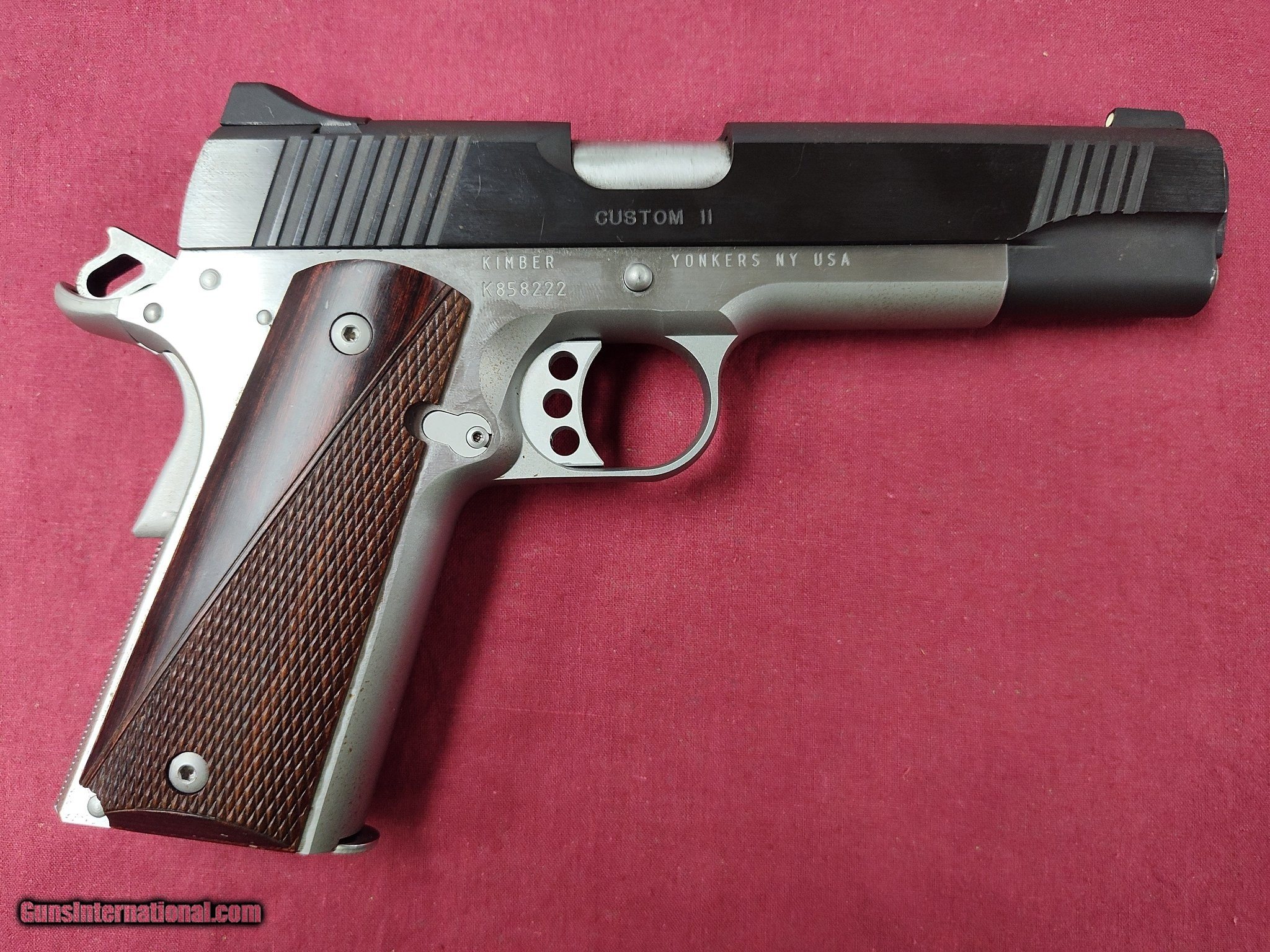 Description: Guns Listing ID: 556575 USED KIMBER CUSTOM II (45 ACP) IN BOX SOLD Manufacturer: KIMBER Model: Custom II Caliber Info: .45 ACP Condition: Used - Non-Certified Barrels: 5" BARREL Action: SEMI AUTOMATIC Finish: two tone |