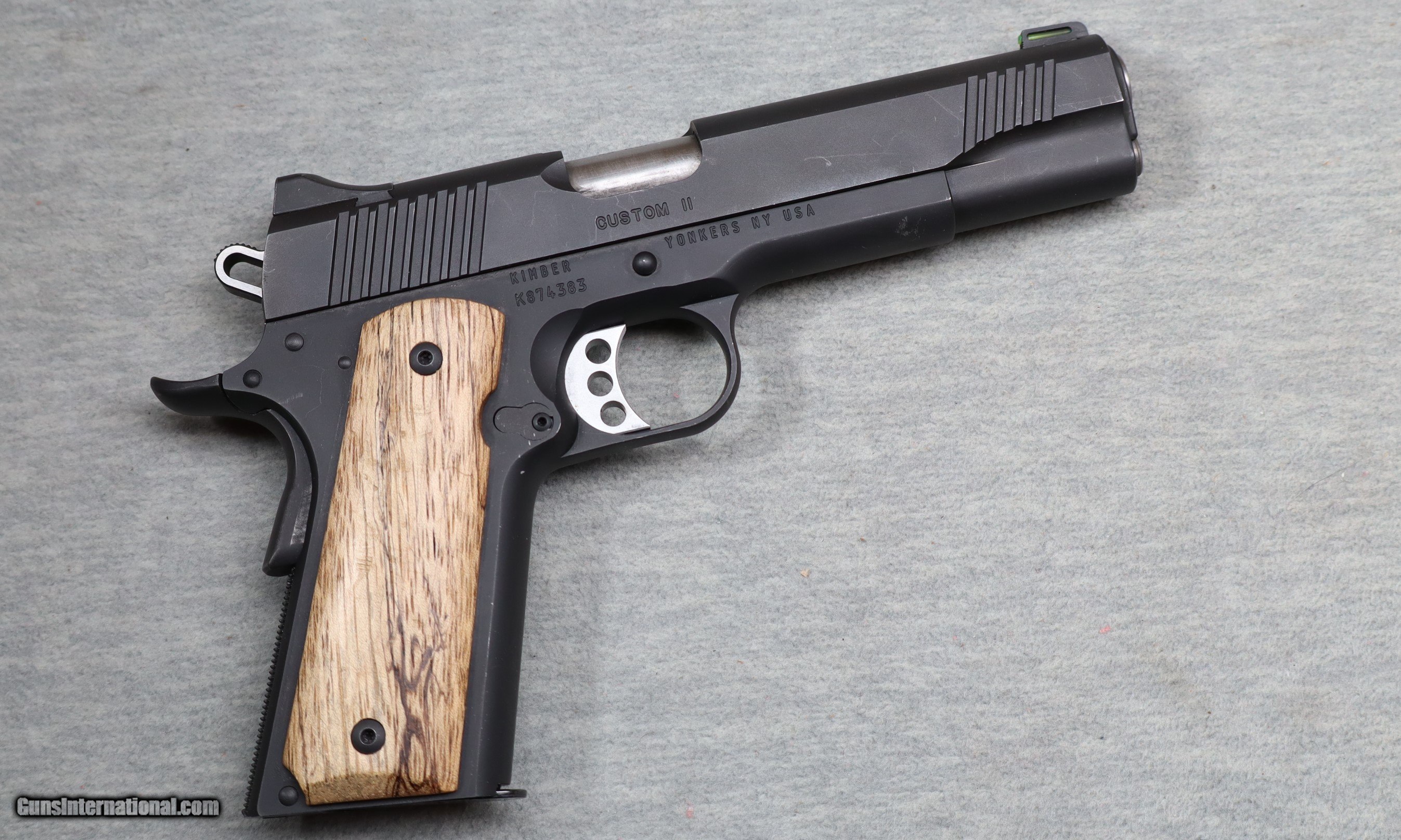 Description: Very Good condition, light finish wear, small nicks & scratches. Comes with five mags and case. Kimber 1911 .45 semi auto pistol, 5" barrel, matte finish, 2 white dot rear & fiber front sights, aluminum single action trigger, lightweight hammer, extended safety lever & grip safety, front & rear slide serrations, checkered flat main spring housing and smooth wood grip panels. .45 ACP Chambers: Semi auto Metal Condition: Very good Bore Condition: Bright Barrels: 5 Triggers: Single action Butt Pad: Wood grips Sights: "2 Dot rear, fiber front sights Item Location: La Vista, NE Price: $549.99 Contact Seller |